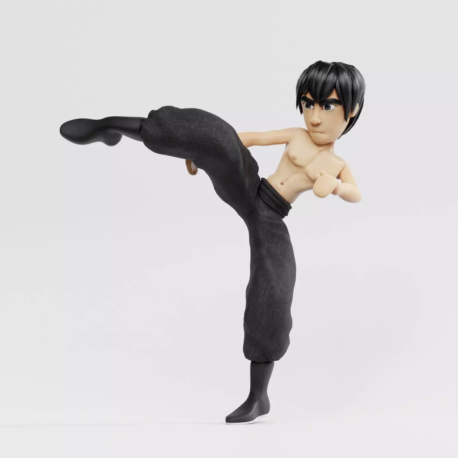 Bruce Lee cartoon Rigged Low-poly 3D model