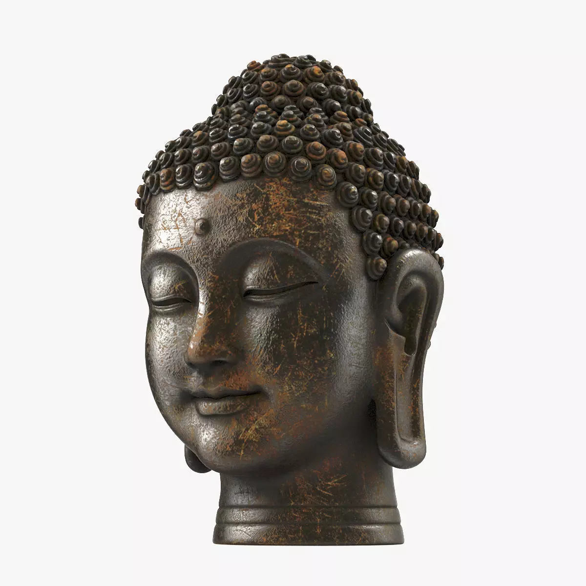 Buddha Head bronze statue. Clean geometry, topology optimized for smooth and animation. No tris, N-gons, only quads.UV mapped, 3 textures 2K: color, bump, ambient occlusion.
