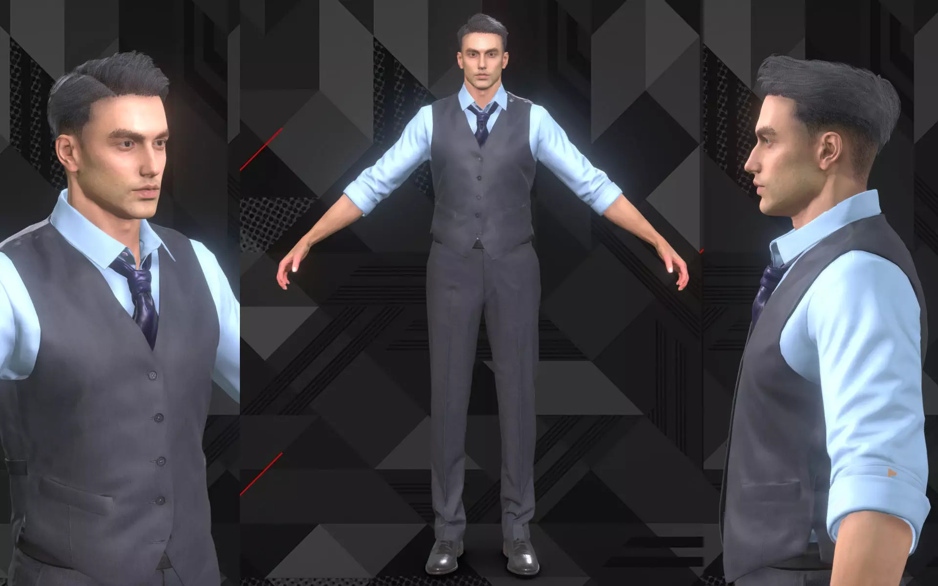 Business Man in working suit vest shirt pants Low-poly 3D model