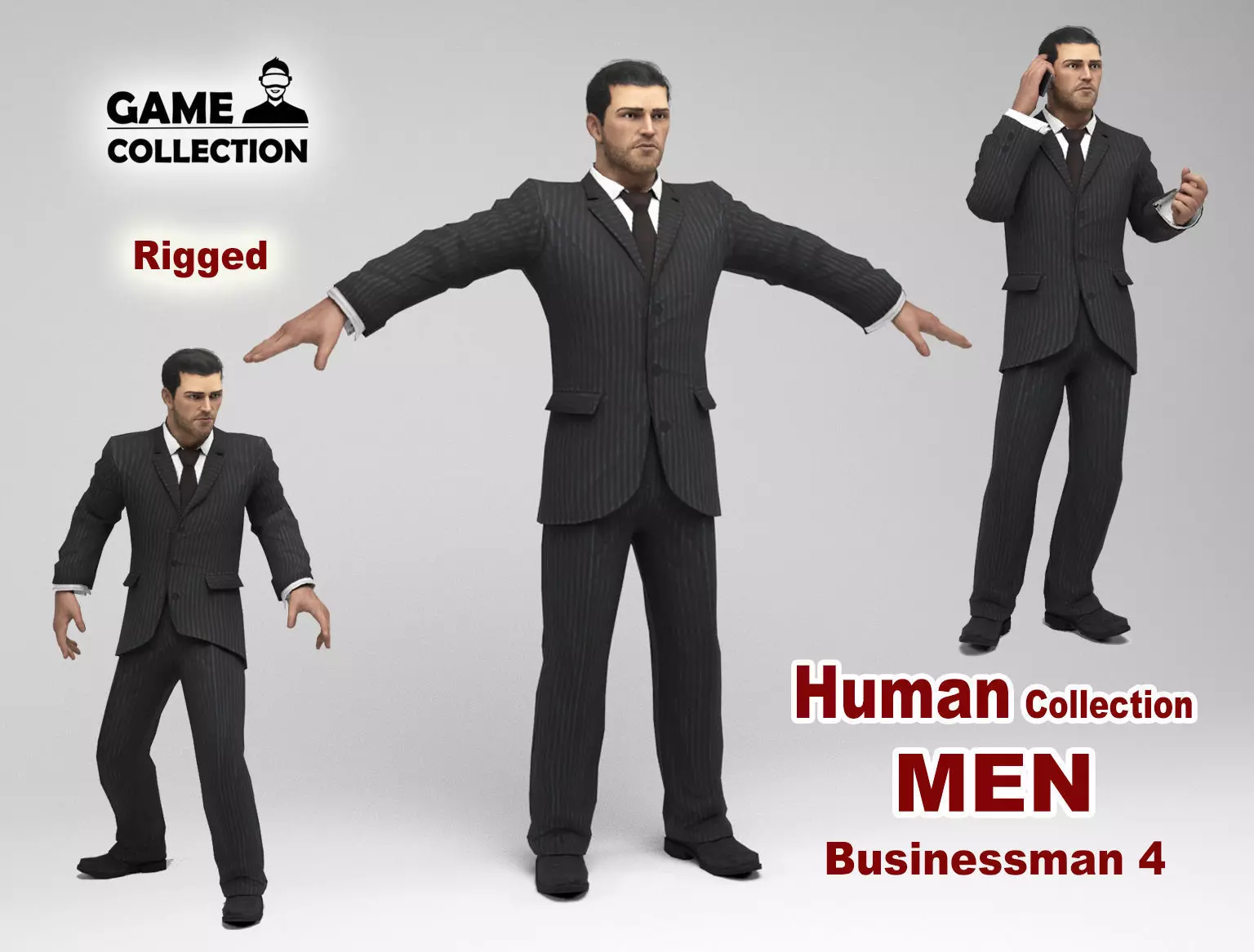 Businessman 4 man in suit talking on phone Low-poly 3D model