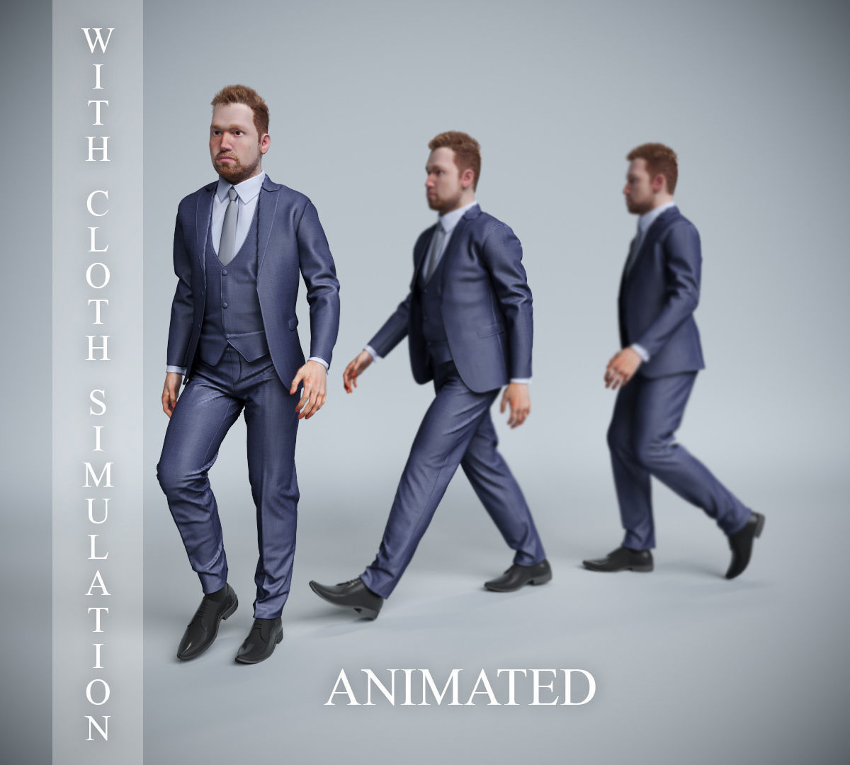 The model includes animations (movement or actions) that can be played in supported software or engines.