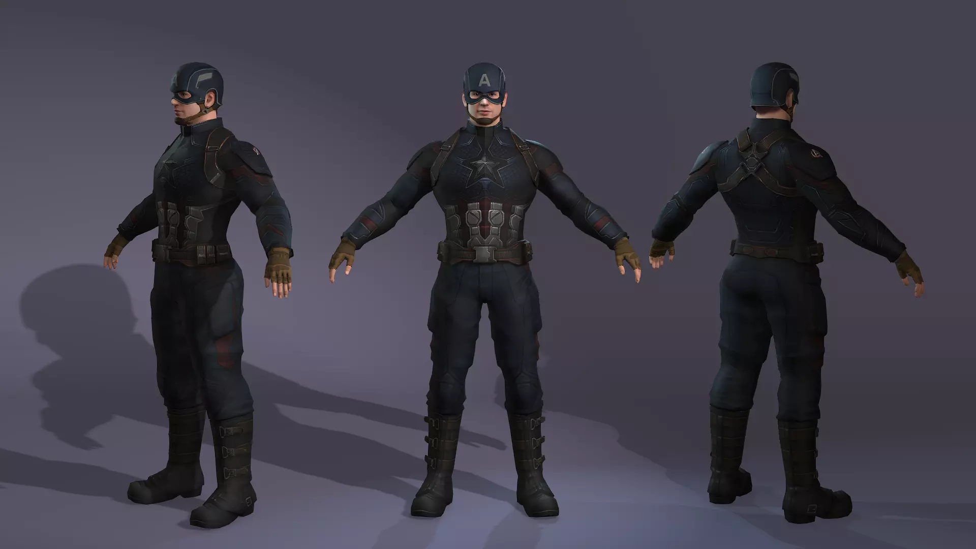This is a high-quality, realistic 3D model of a masked super soldier character, inspired by iconic superhero archetypes.