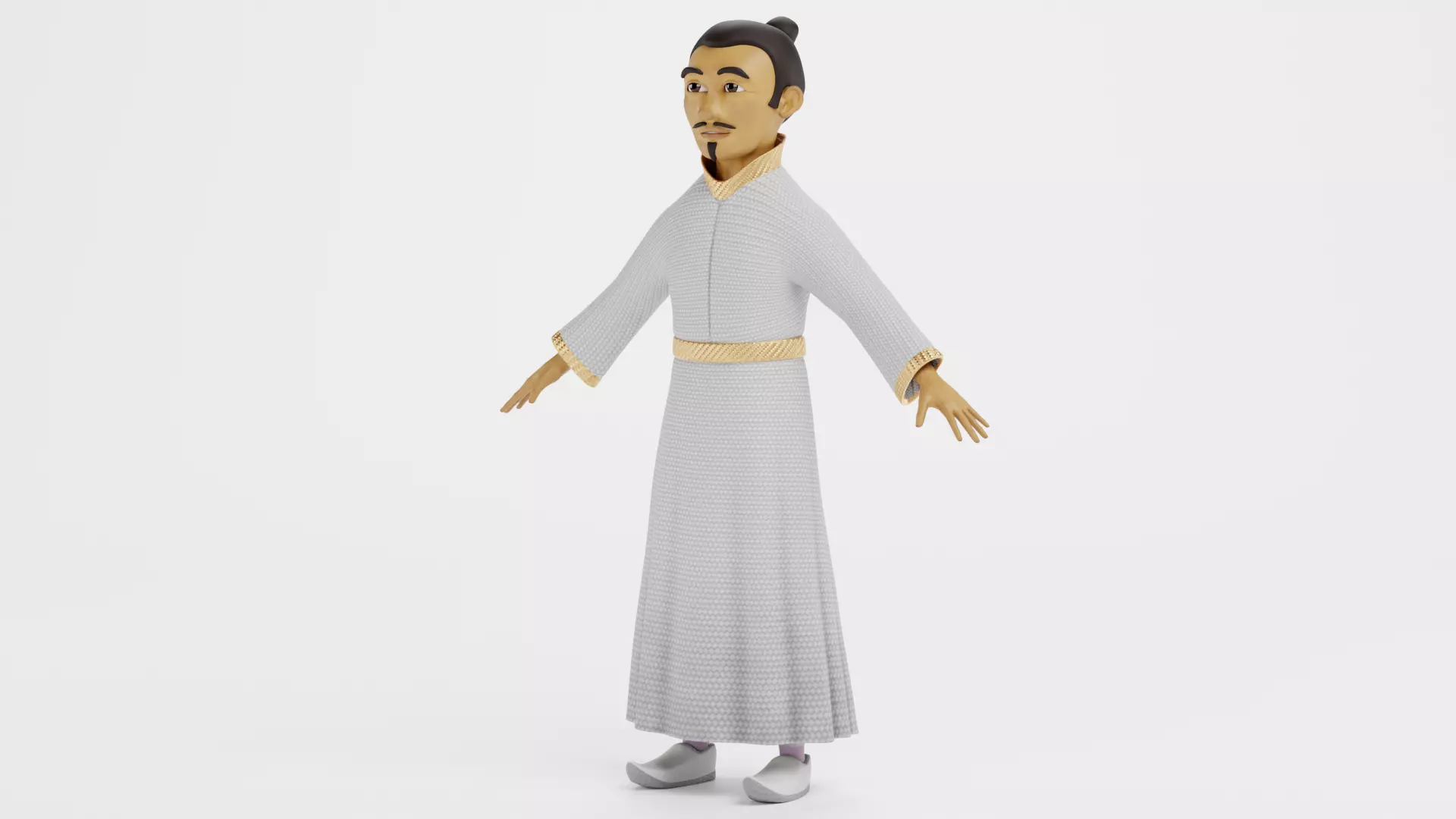 A stylized Shaolin monk warrior character built with clean topology, efficient UVs, and handcrafted detail. The model is fully rigged in Blender 4.3, designed for smooth, natural movement with stable deformations during animation. A demonstration run cycle was created to showcase how the rig performs in motion — this animation is not included with the product. Created with a production mindset, the model maintains a balanced level of stylization while staying technically reliable for animation, rendering, or real-time use.