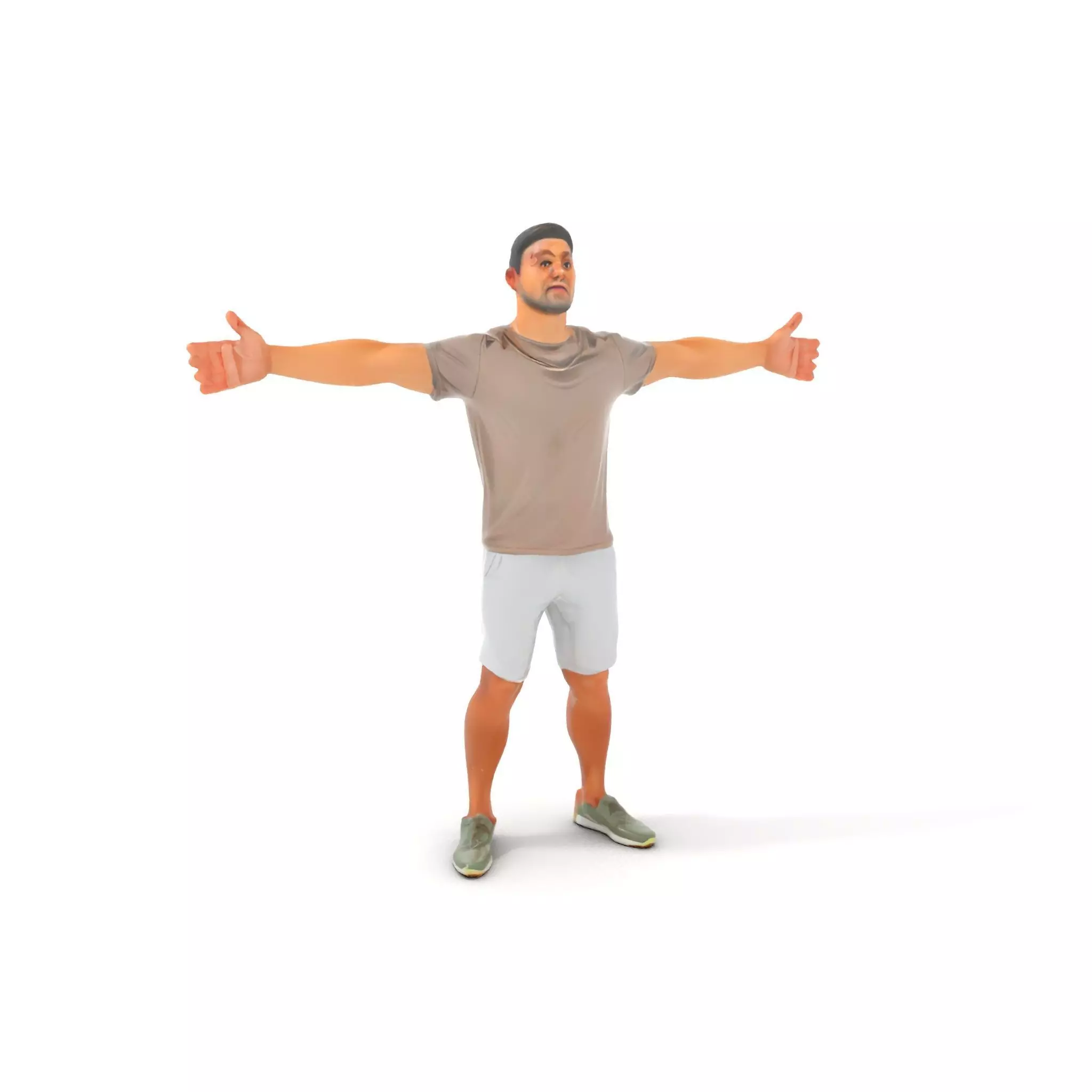 This casual athletic man 3D model is perfect for various projects, featuring a stylish and modern design. With its realistic clothing and posture, it is ideal for use in virtual worlds, product visualizations, or advertising campaigns. Each model has 3 levels of detail: low-poly (1000 triangles for mobile), middle-poly (10,000 triangles for environment), and high-poly (100,000 triangles), which allows for the use of this model in production rendering (such as 3ds Max, Maya, Cinema 4D, Blender, Vray/Corona/Cycles and all others), game engines (Unity and Unreal compatible), and interactive presentations, providing a choice of detail based on the LOD system principle. The model's textures are PBR, Diffuse, NormalMap, and reflection/roughness/metallic, suitable for any modern rendering engine. All models are accurately unwrapped and have no overlapping UV. All textures are 4096*4096 in size. Please like and leave a comment if you enjoyed the model.