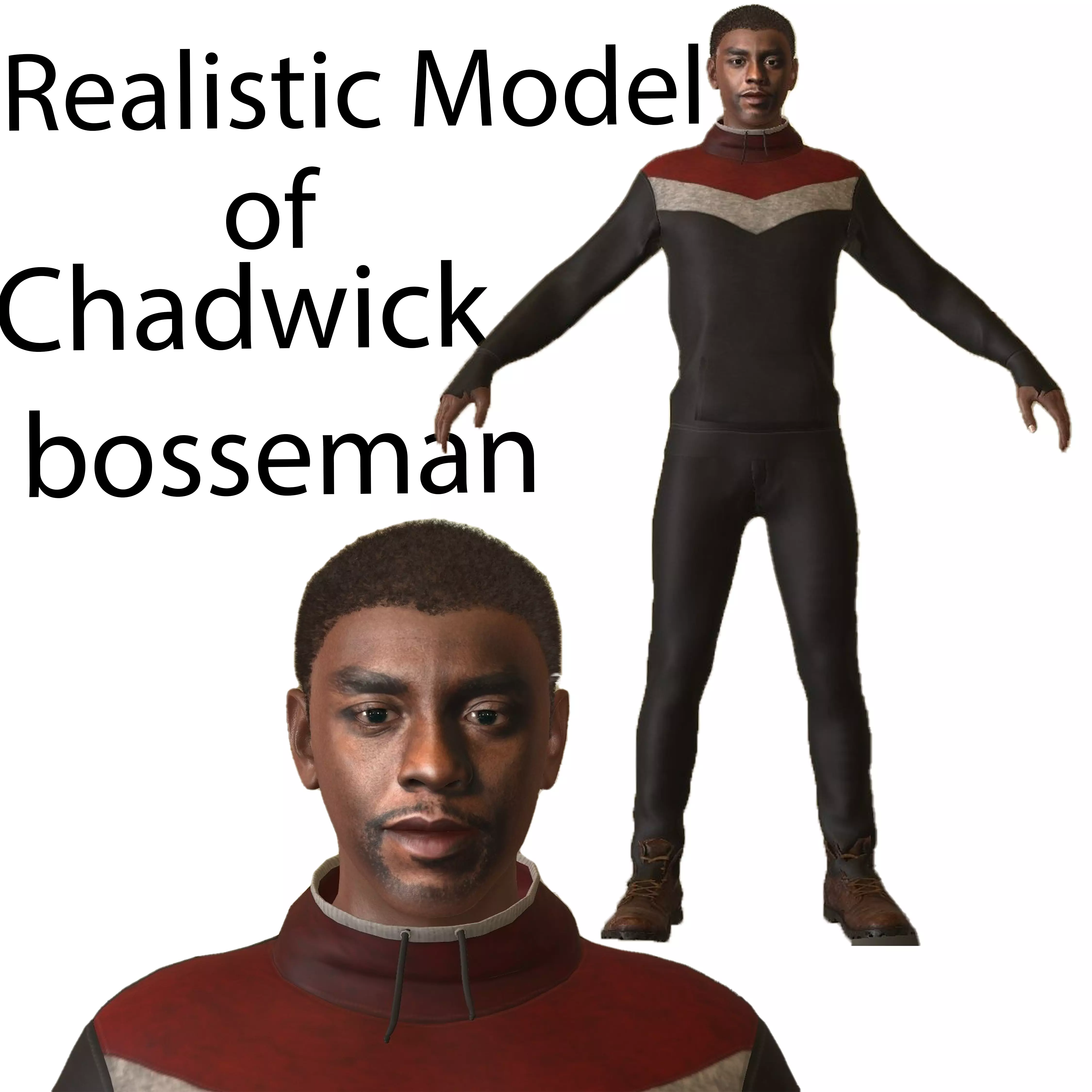 this is realistic model of **Chadwick Bosseman **created for game and social media purpose it is high-poly and low-poly also game ready character it has 292768 vertices, 421145, 147433 faces ready for game