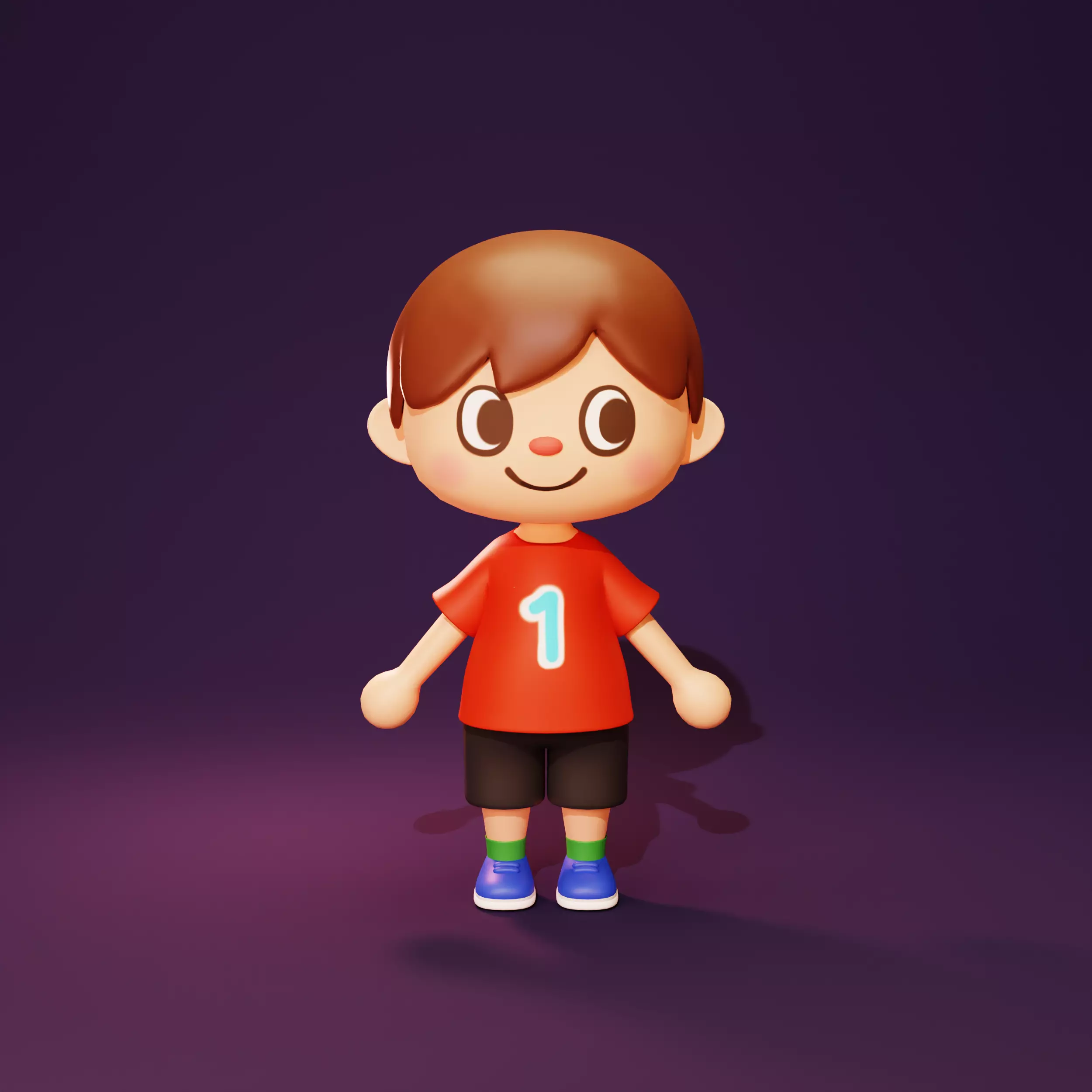 The model is split into the following meshes: head, body, shirt, pants, shoes