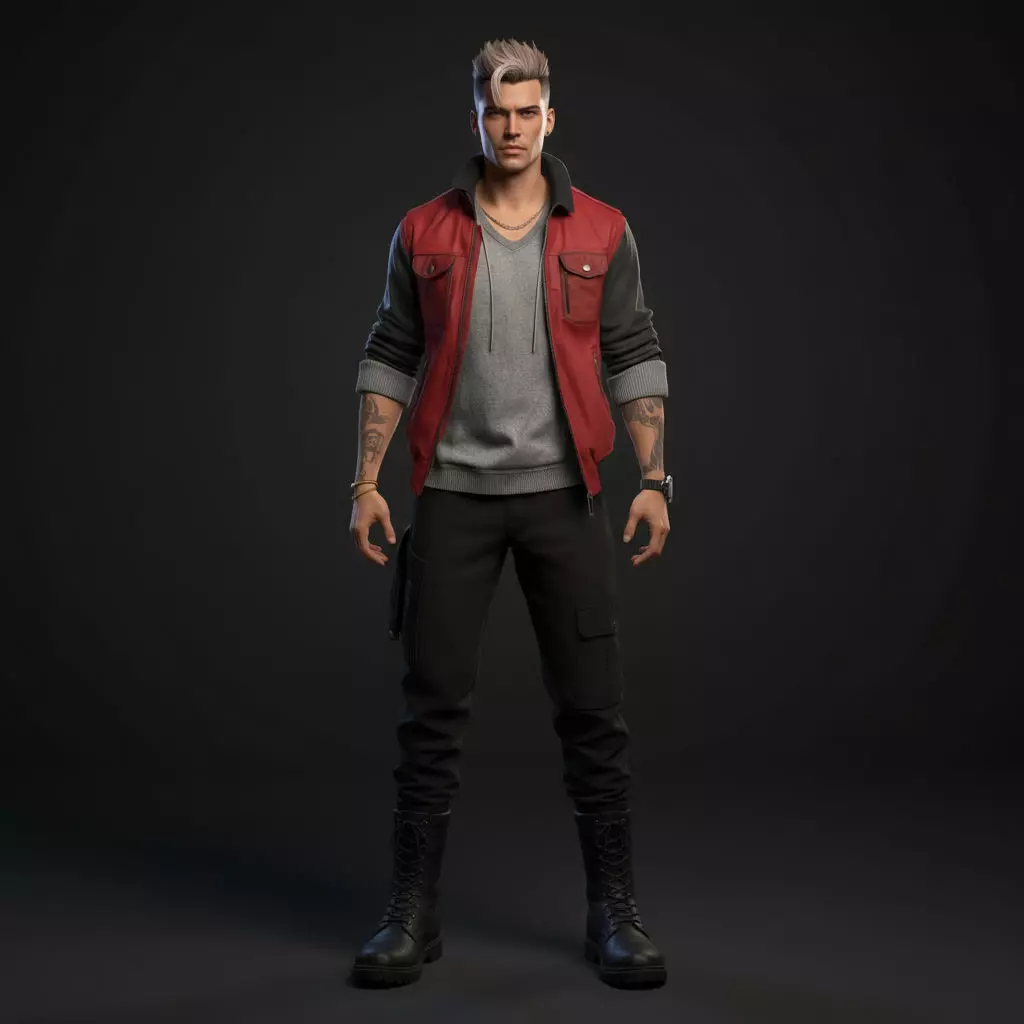 This is a rigged stylized male character in a clean T-Pose, ideal for games, cinematics, and 3D animation workflows. The model includes a modern urban streetwear outfit with a red jacket, grey shirt, black leather pants, and boots—perfect for action, adventure, and open-world projects.Highly detailed rigged stylized male character in T-Pose. Includes PBR textures, game-ready mesh, and full humanoid rig. Compatible with Unity, Unreal, Blender, and major DCC tools.