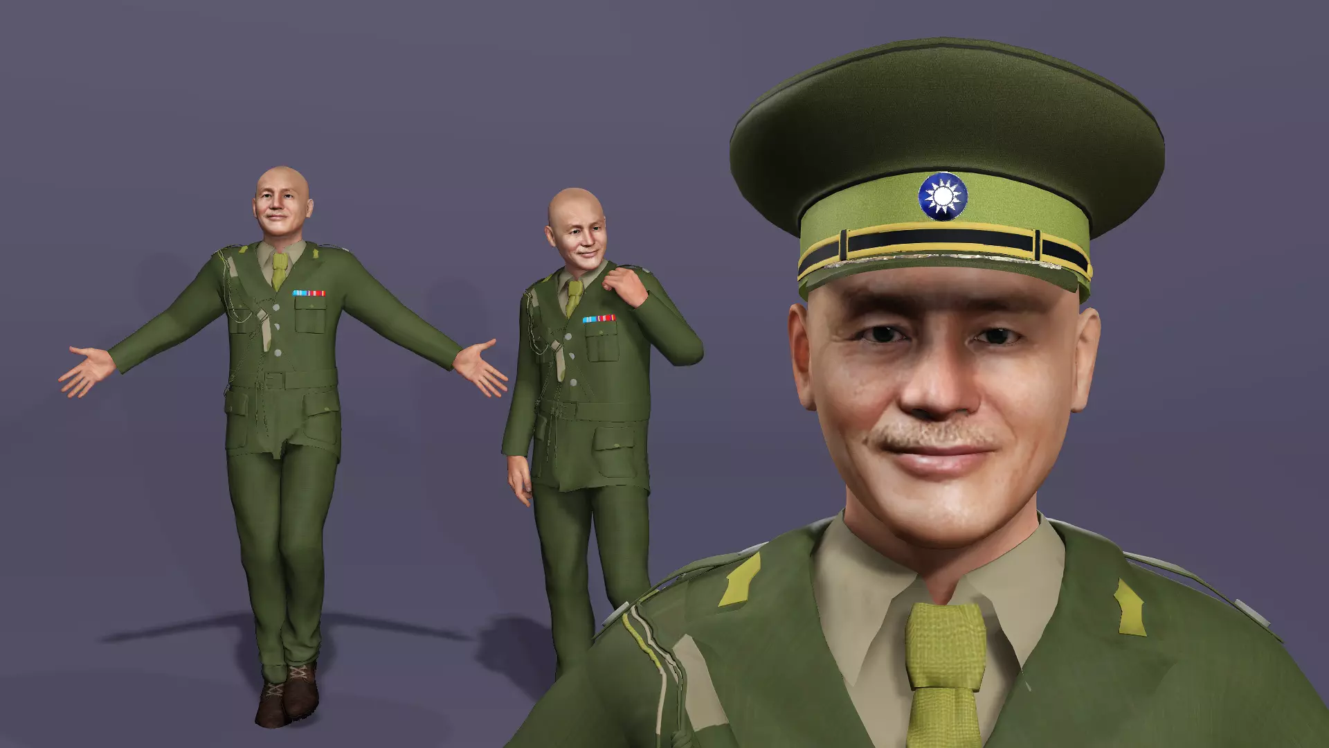 Realistic human 3D Model, the character is 90% similar to the President Chiang Kai-shek of the Republic of China.