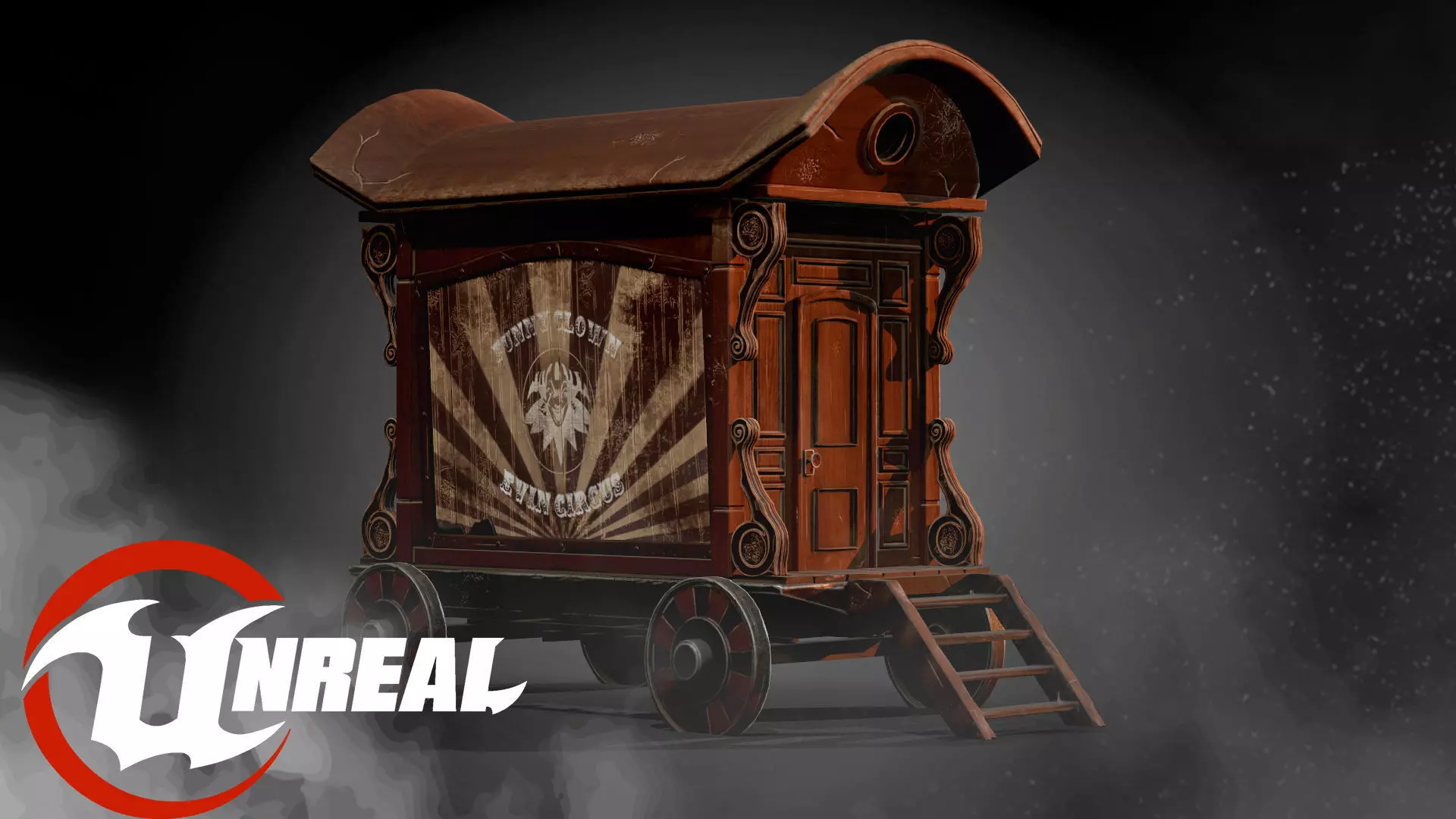 An old circus wagon, abandoned and forgotten by time, has become a symbol of fear and mystery. Its cracked wood and faded bright colors serve as a haunting reminder of the joyous days that have now turned into darkness and secrets. This wagon is perfectly suited for creating an atmosphere of unease and tension in horror games.