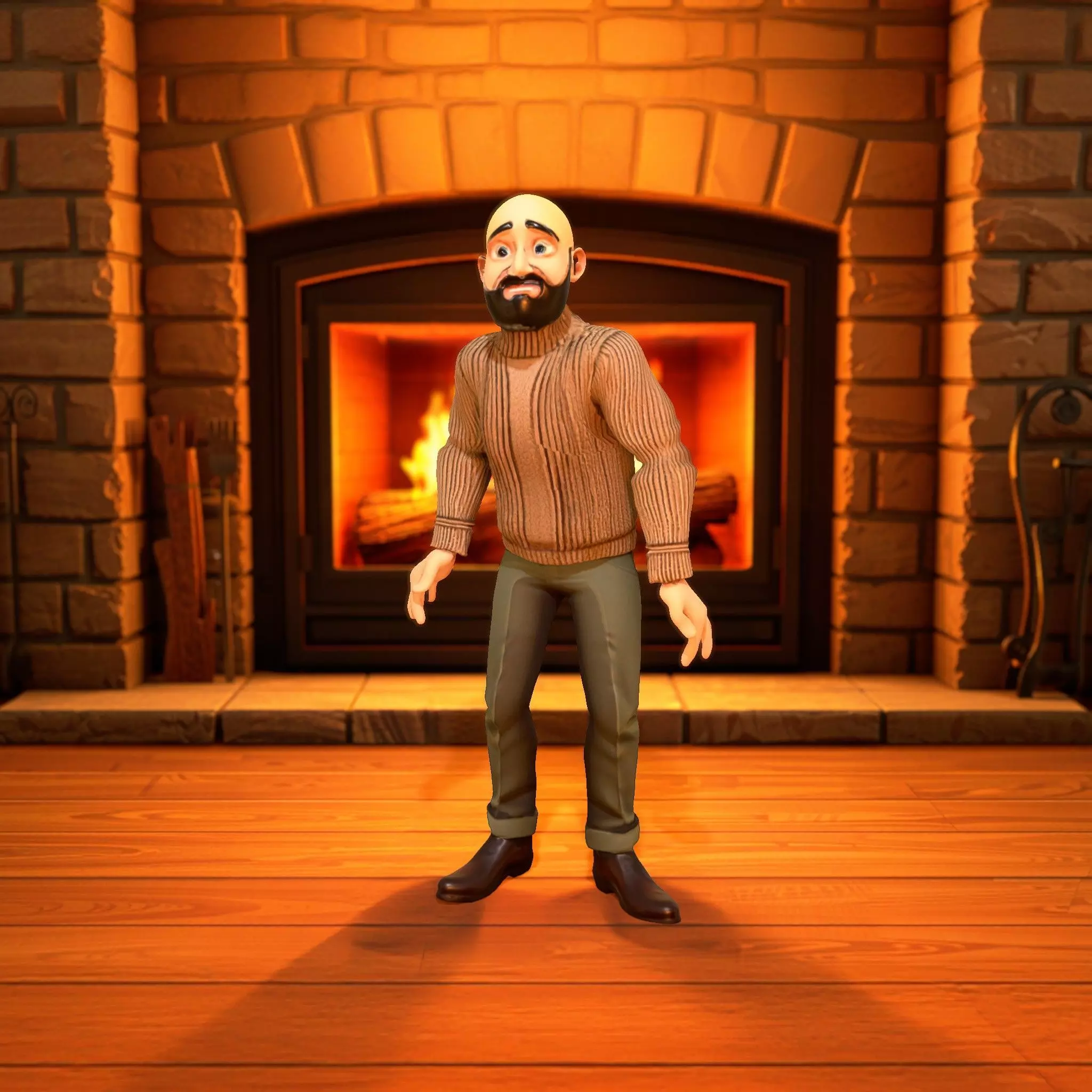 This 3D model features a male character in a cozy, textured sweater, perfect for animations, games, or simulations. Its realistic design and rich details add depth to any scene.