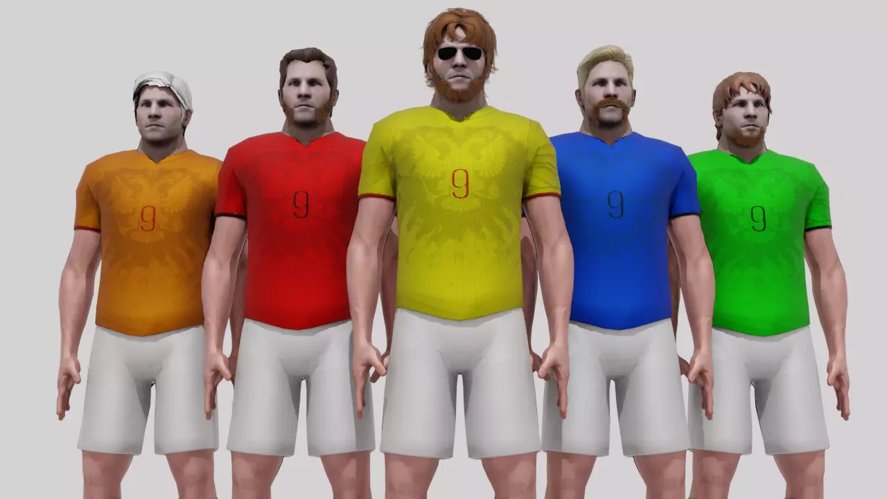 Soccer Player Assets3 different beards.3 different moustaches.5 different hair-styles.5 different outfits - Costume.1 sunglasses.1 football.