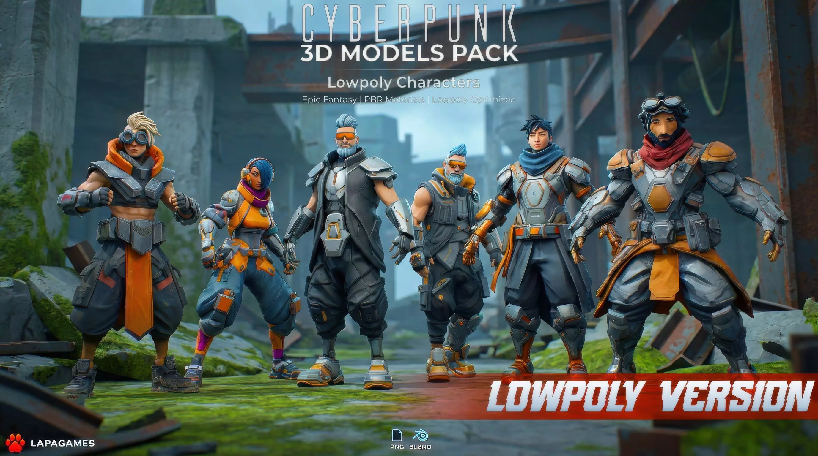 Stylized lowpoly human charactersCyberpunk street mercenary themeTactical armor and urban outfitsMultiple character variationsStrong silhouettes for gameplay readabilityGame-ready and performance-friendlySuitable for enemy, ally, or NPC roles