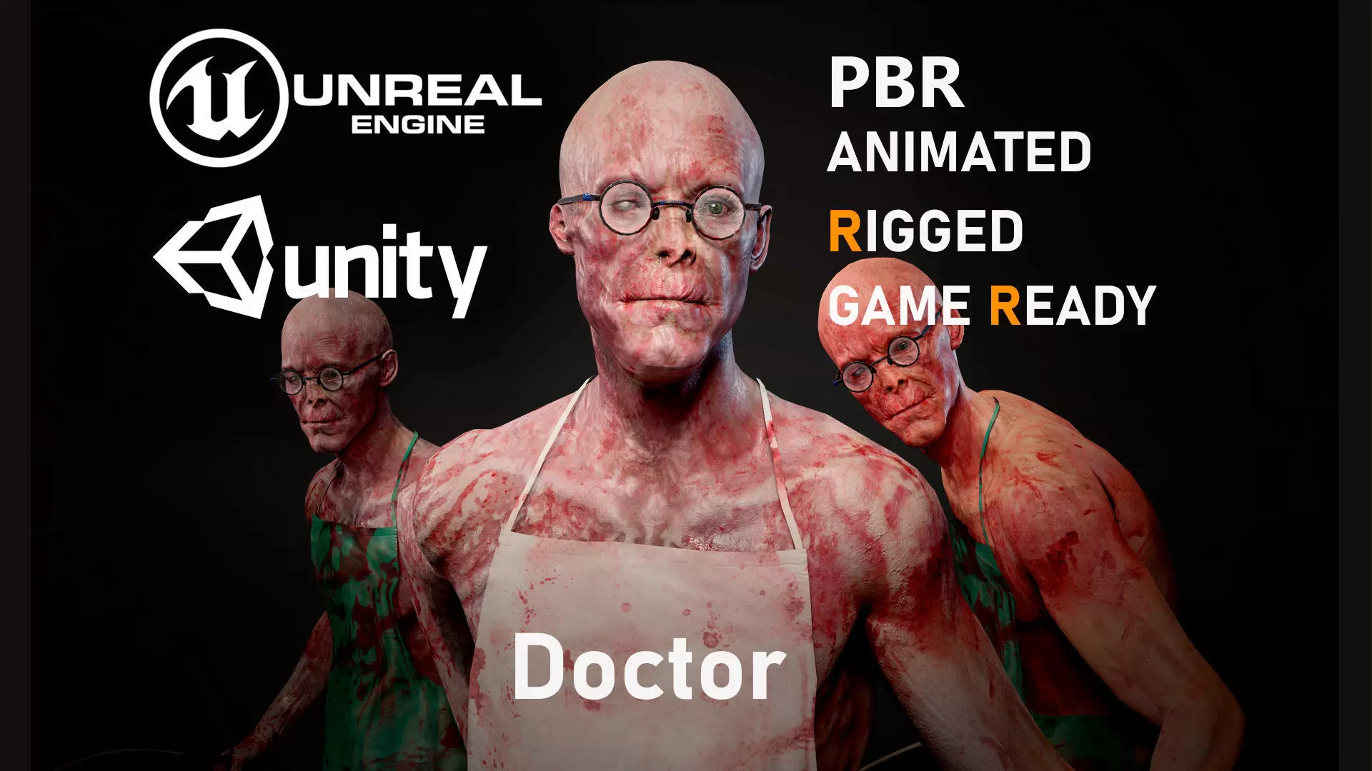 Model also have separated parts: head, Legs, body, Glasses, Apron, WeaponTextures all texture map 4096