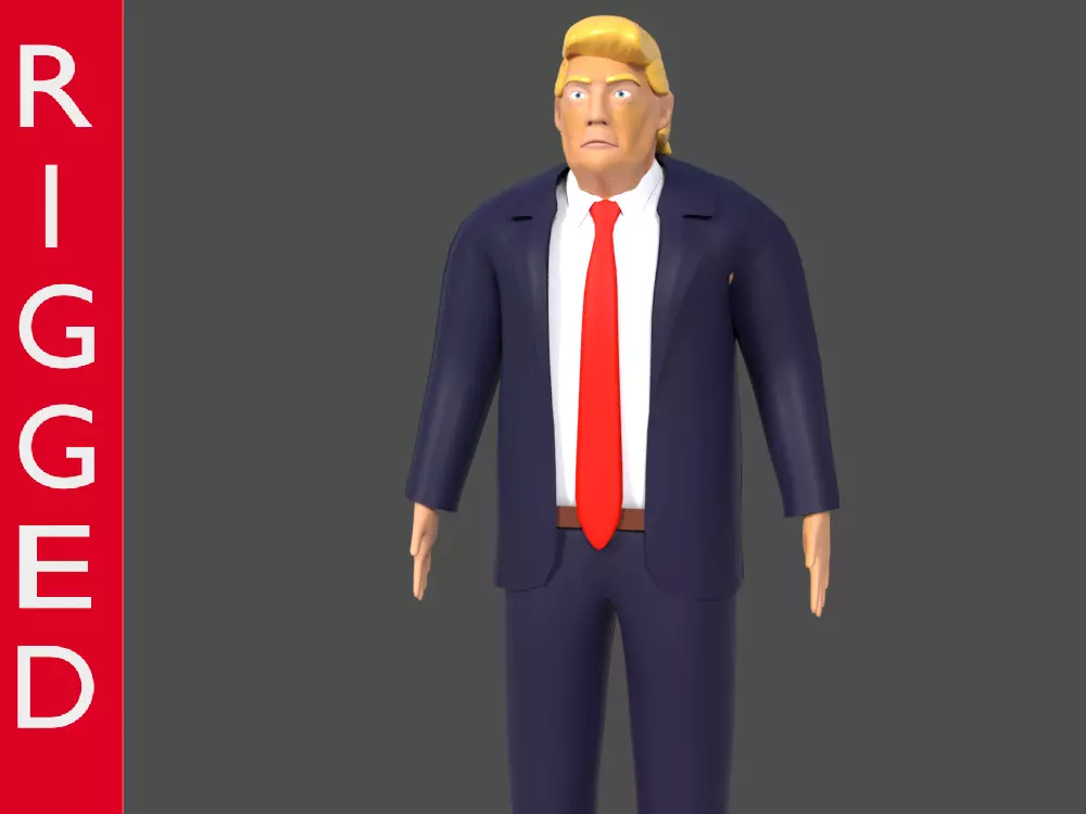 This is the Low-Poly 3D model of the multimillionaire president of the United States Donald J Trump, This is a not realistic 3D model, is more like a kind of a cartoon 3D model.