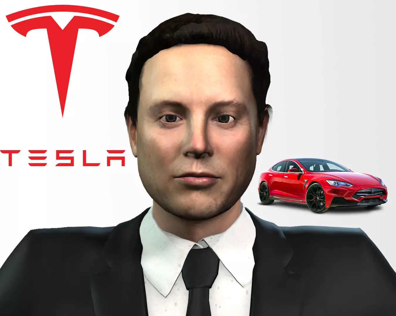 Elon Musk the CEO of Tesla is full rigged with skeleton, full face rigging and texture.