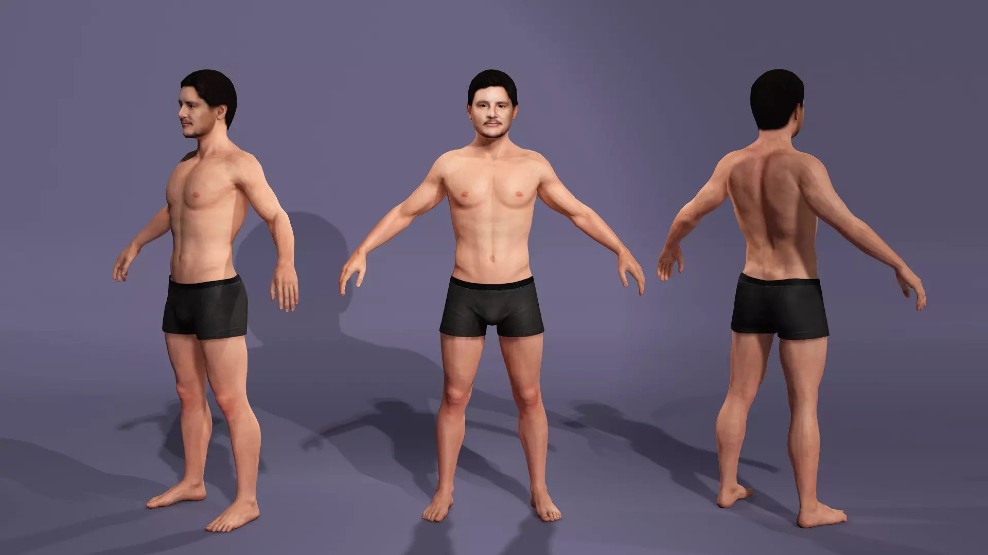 Realistic Male 3D Model, the character is 90% similar to Pedro Pascal. Game of Thrones.