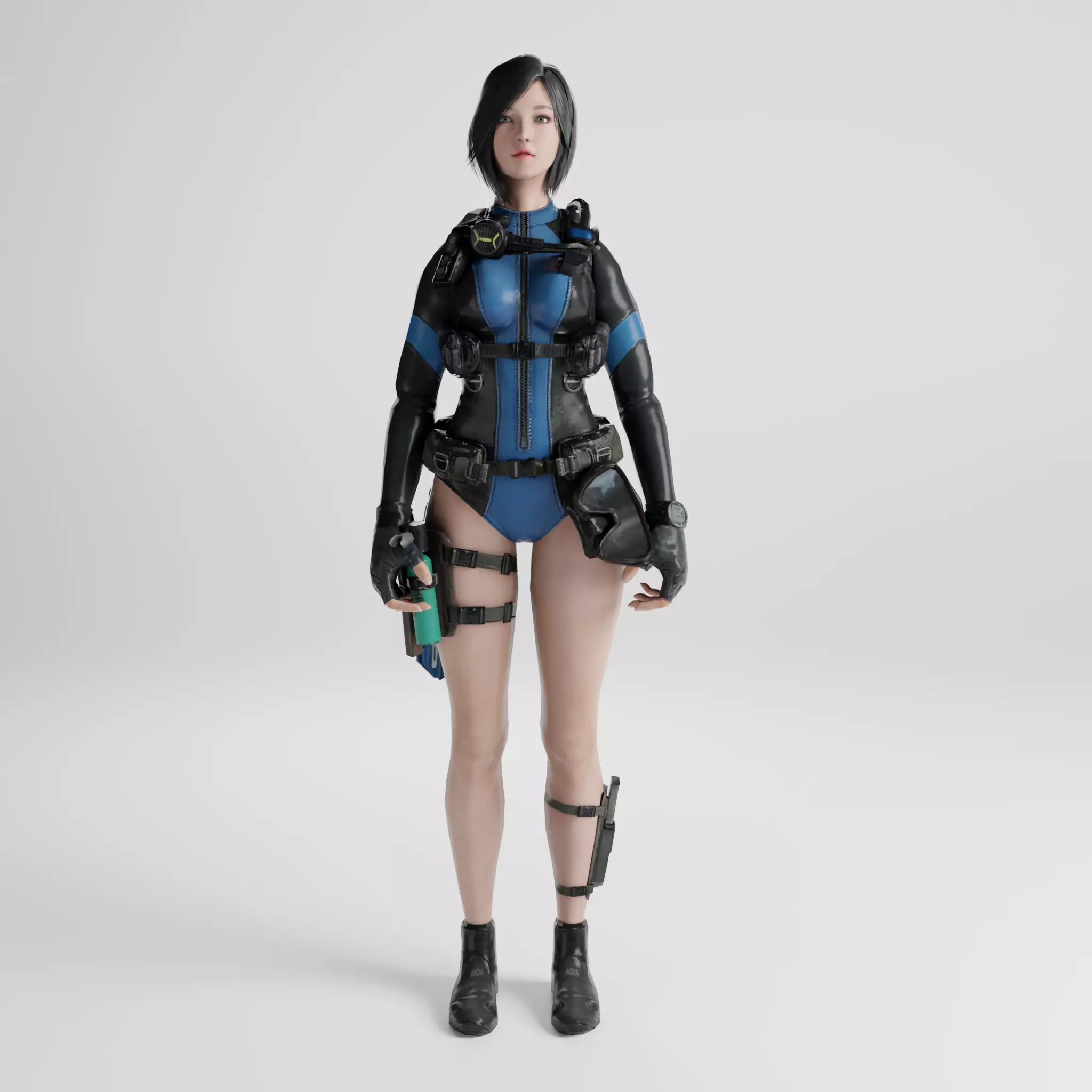Female servival Game Ready rigged character Low-poly 3D model