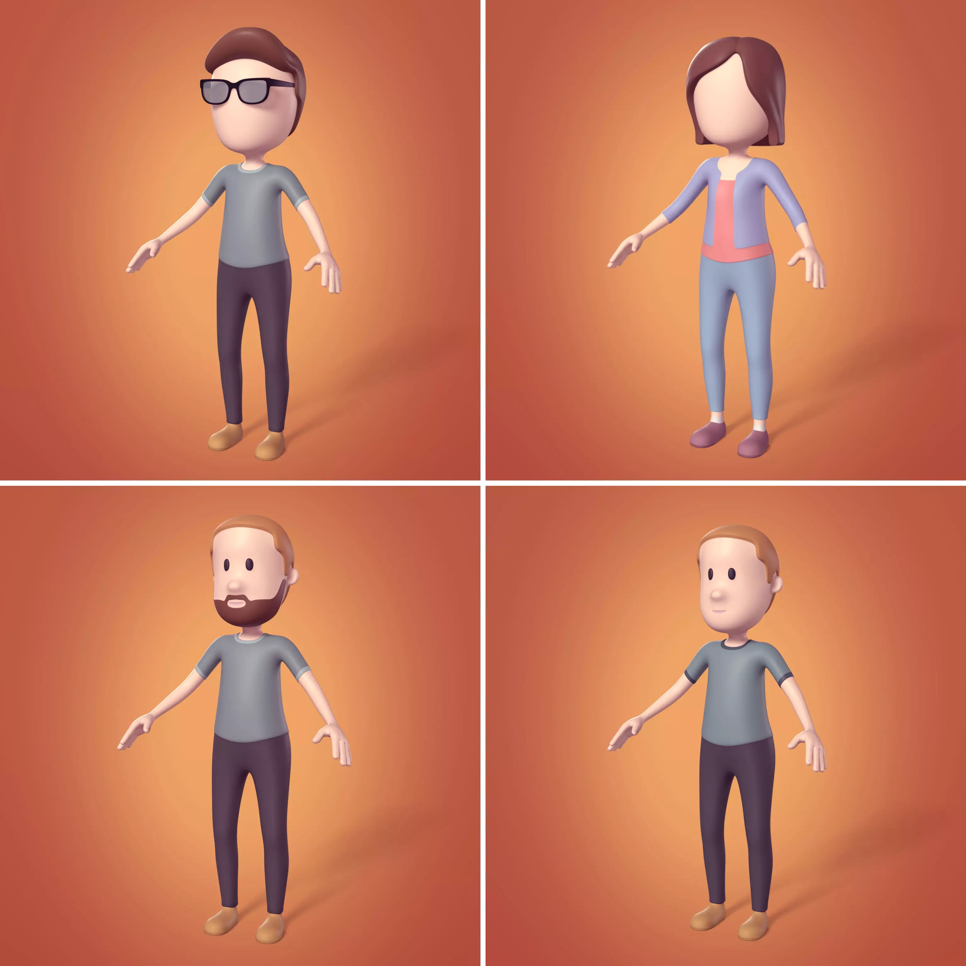 For each character there are 2 .blend files, one with FK Rig and the other with IK Rig, there is also for each character one .fbx file with FK Rig and without subdivision applied on its mesh