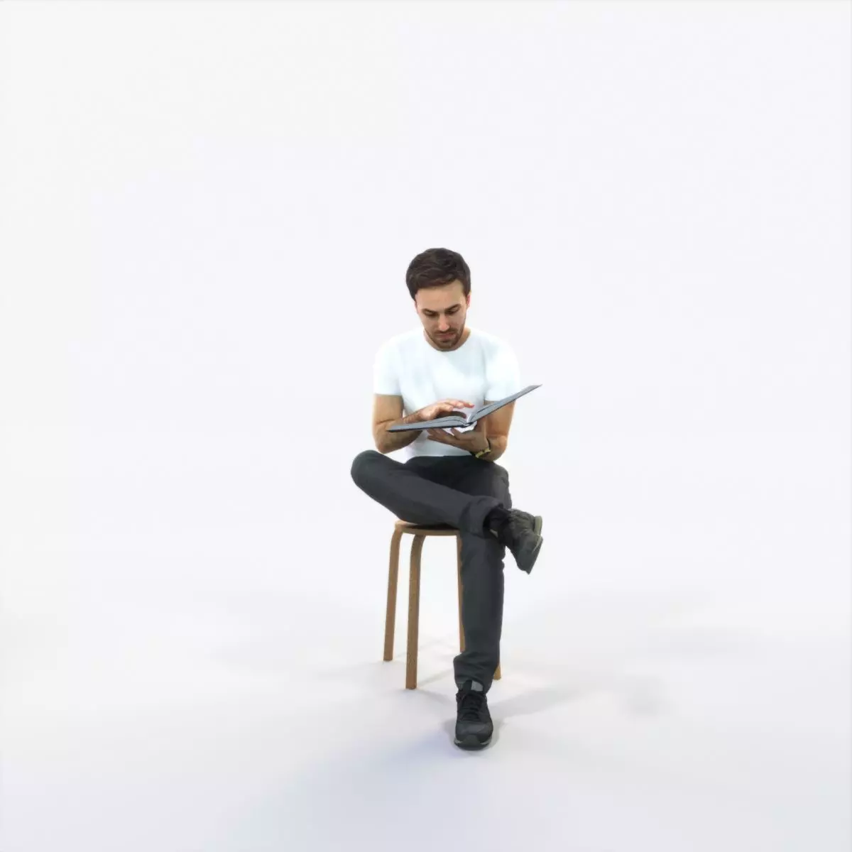 Flow 13D Reading a Book Sitting Casual Man Low-poly 3D model