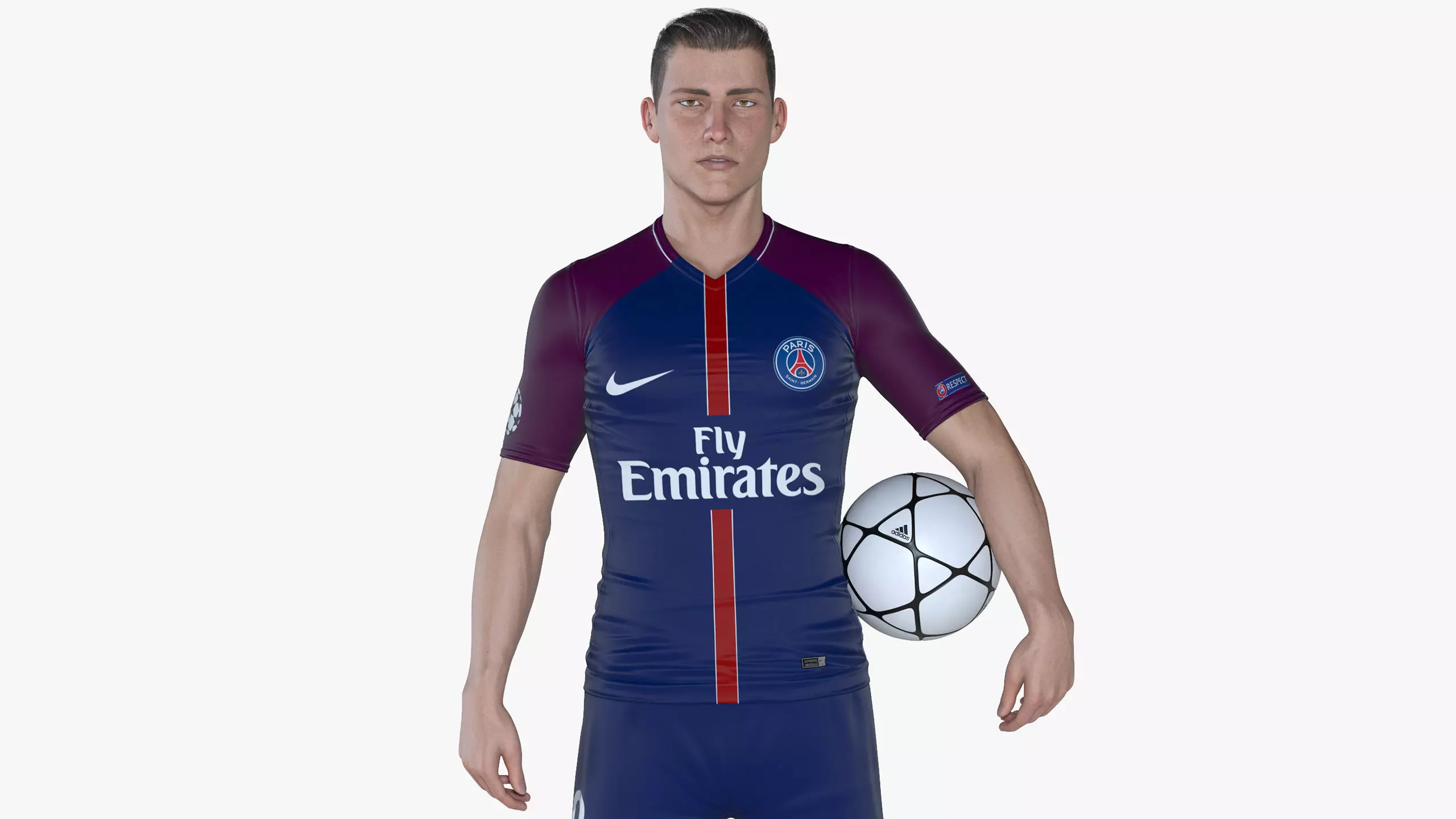 WARNING: the exchange formats are not rigged.Hi-res football/soccer player model (ball included, see above images) for rendering projects.The model is fully rigged with 3ds Max CAT, textured and shaded for V-Ray.The scene includes 14 different uniforms (the materials are already set up in the material editor), 10 of which are of top european clubs, and the remaining 4 are generic ones.Substance Painter files of each team are included, so it's possible to add missing logos, replace existing ones and create entire new uniforms as well.The following textures are used: