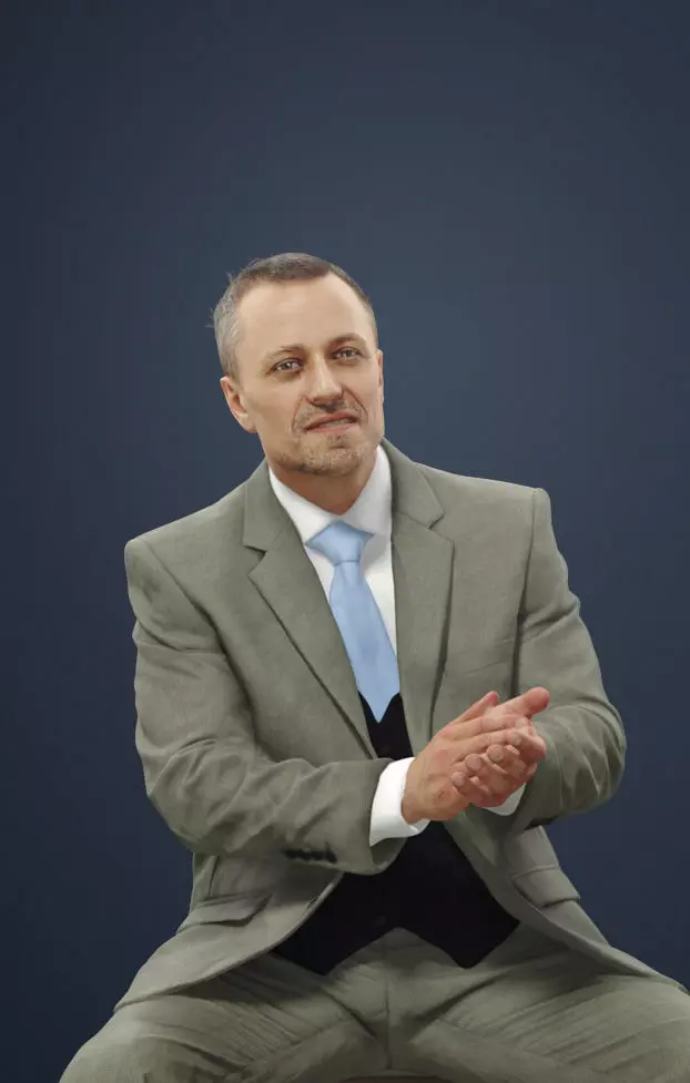 Fortitude Business Male In A Warm Grey Suit Sitting And Clapping 3D model