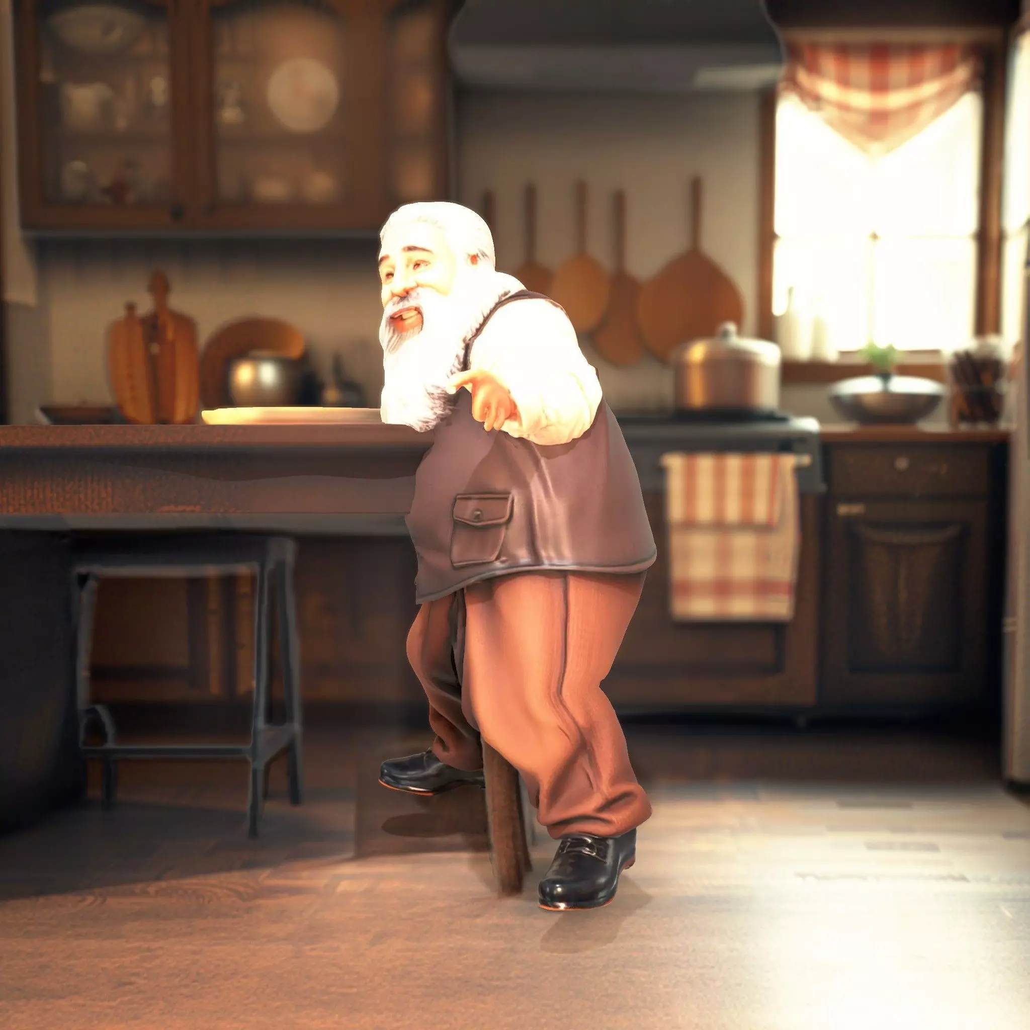 This friendly elderly character model features a warm, inviting design with intricate details such as a long beard and casual clothing, ideal for both animated storytelling and virtual environments. Each model has 3 levels of detail: low-poly (1000 triangles for mobile), middle-poly (10,000 triangles for environment), and high-poly (100,000 triangles) allowing for versatile use in production rendering, game engines, and interactive presentations. Perfect for creating heartwarming scenes, educational apps, or commercials. The model's textures are PBR, Diffuse, NormalMap, and reflection/roughness/metallic, which are suitable for any modern rendering engine. All models are accurately unwrapped with no overlapping UVs. All textures are 4096*4096 in size. If you like this model, please give it a like and leave a comment!