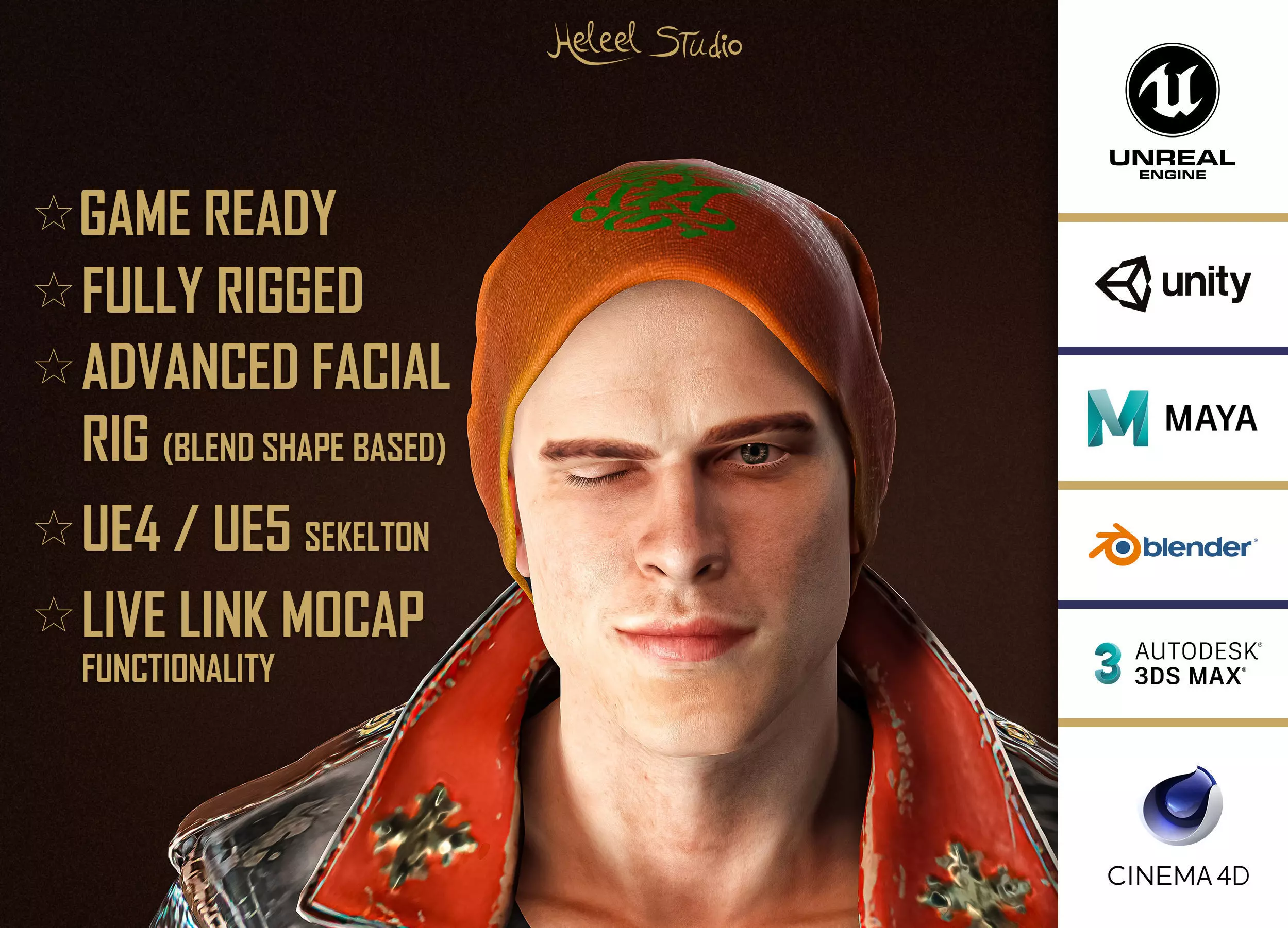 • C4D FBX (Contains body skeleton, expression blendshapes and embeds texutres)