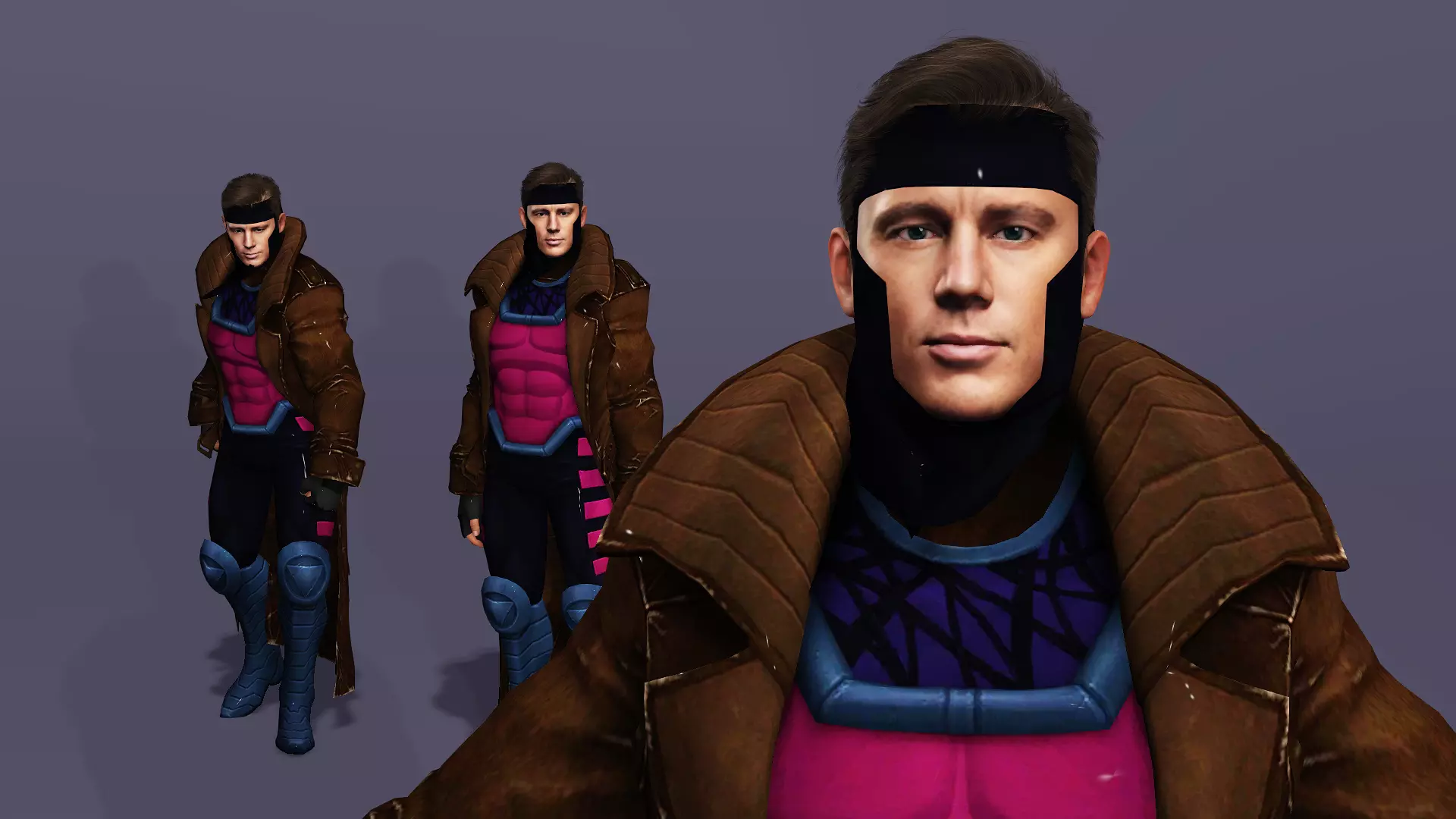 This is a realistic male superhero 3D model, inspired by Channing Tatum’s iconic “King of Cards” look from Deadpool & Wolverine.