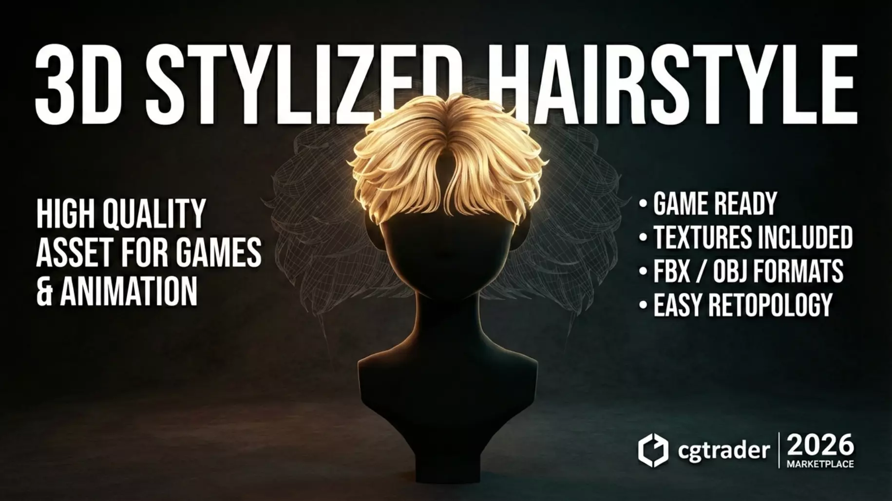Male hairstyle 3D model, ready for MOBILE/PC games on UNITY/UNREAL ENGINE