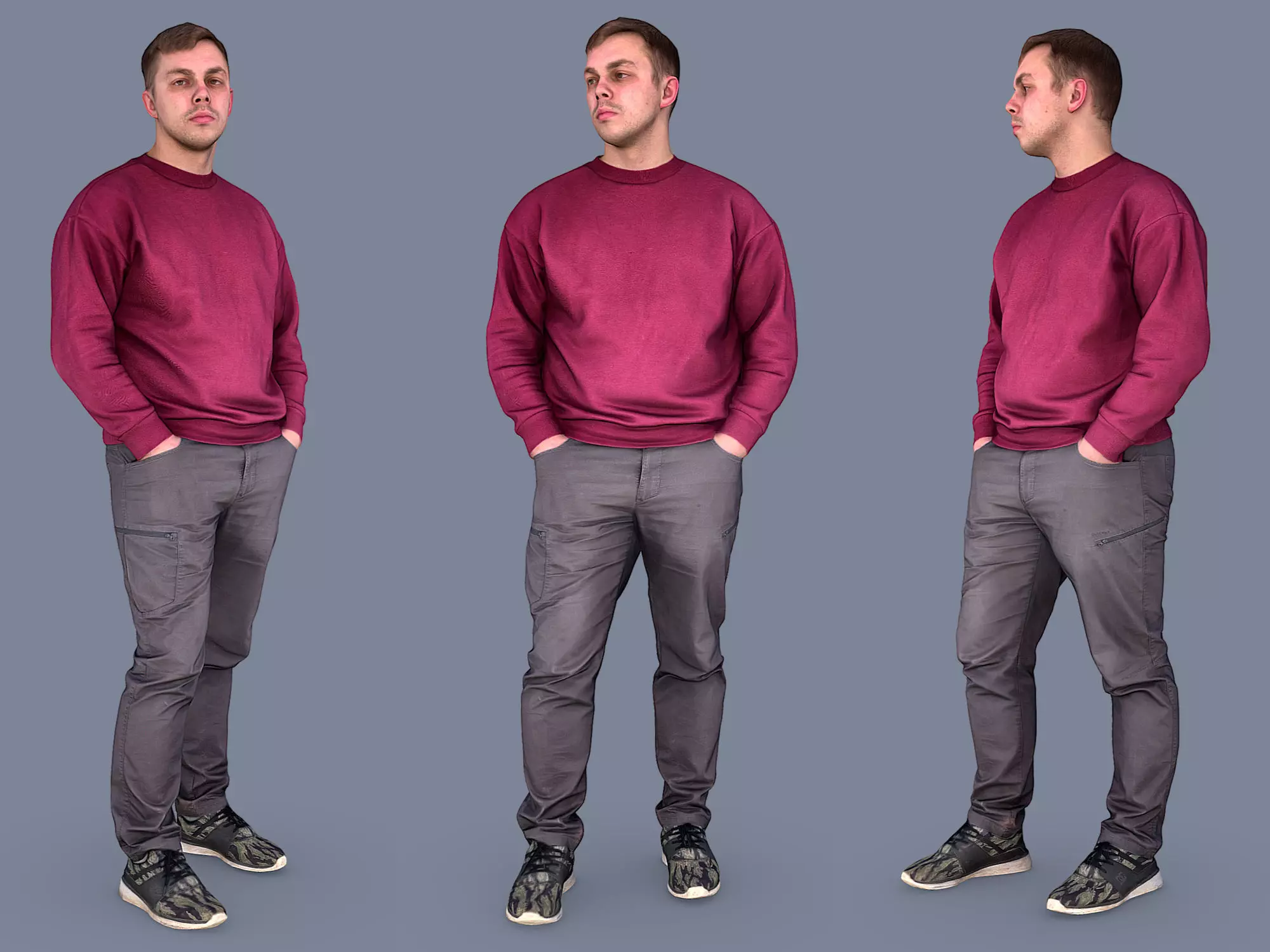 Photorealistic Casual Character 3d model ready for Virtual Reality (VR), Augmented Reality (AR), games and other real-time apps. Suitable for the architectural visualization and another graphical projects. 50 000 polygons per model.