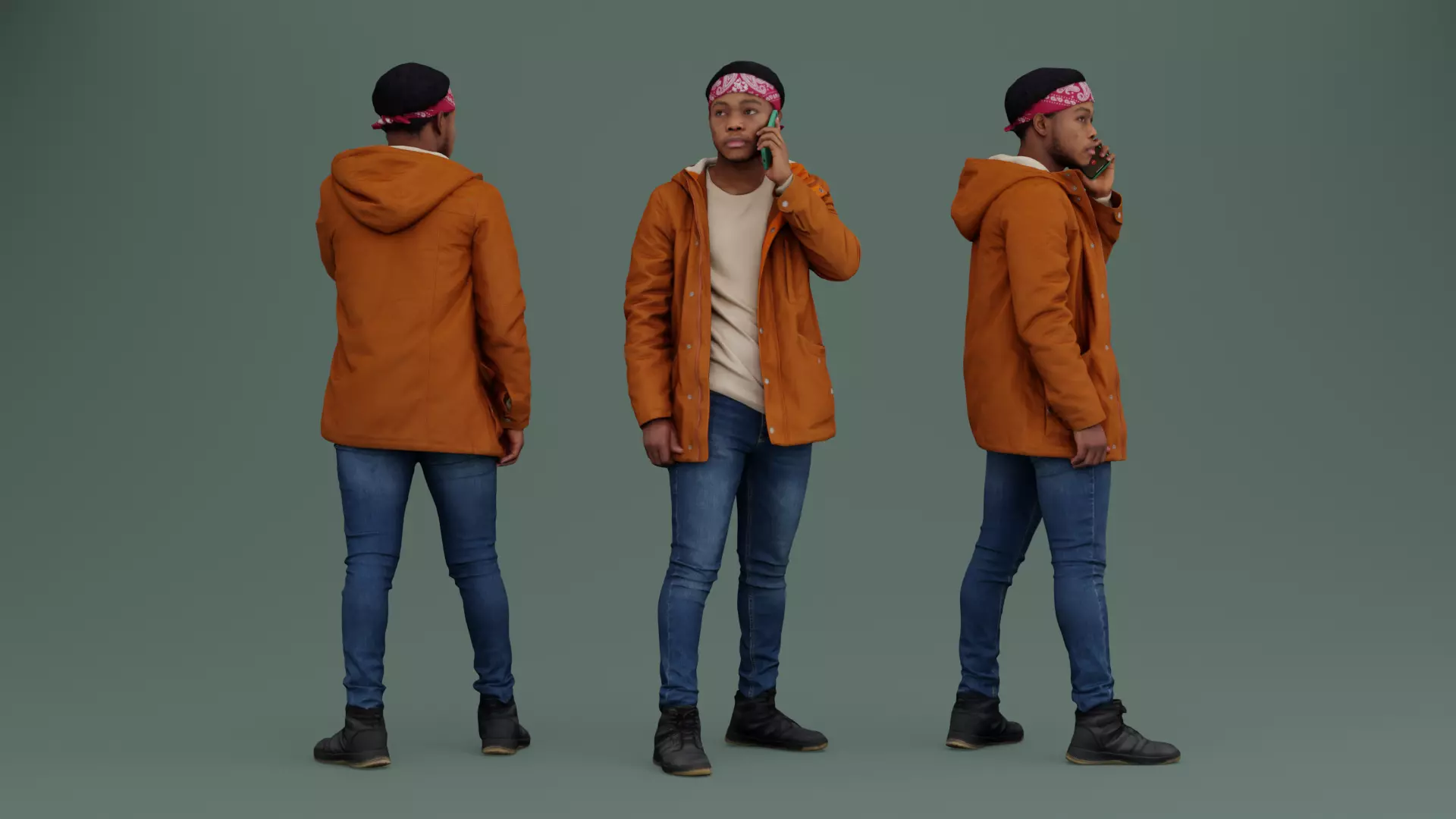 Guy in Orange Jacket with Smartphone 3D model