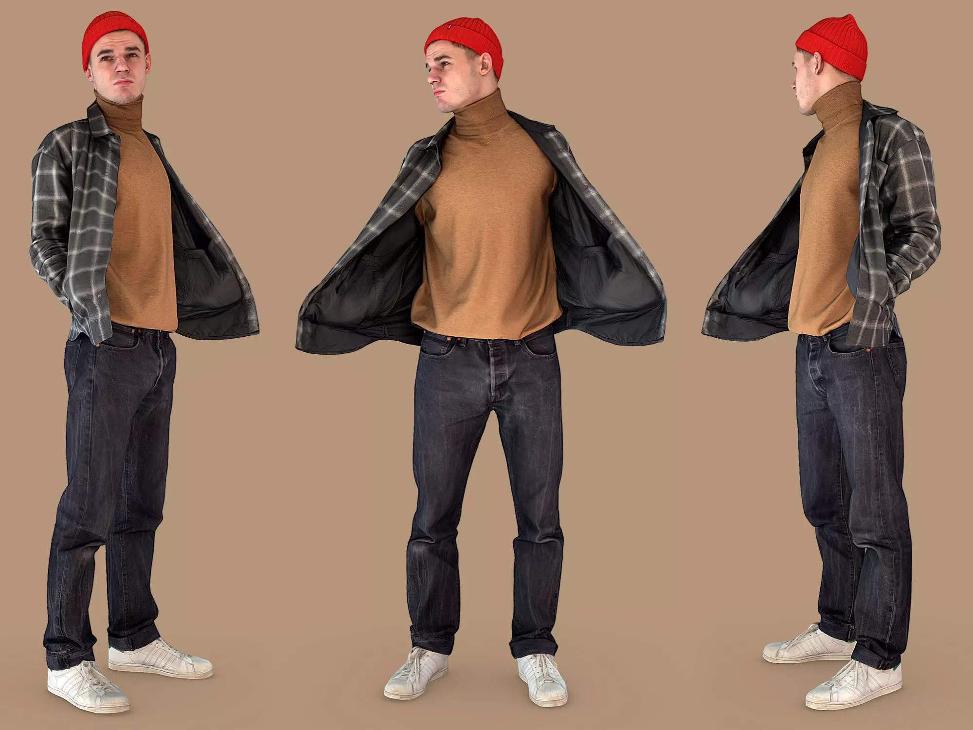 Photorealistic Casual Character 3d model ready for Virtual Reality (VR), Augmented Reality (AR), games and other real-time apps. Suitable for the architectural visualization and another graphical projects. 50 000 polygons per model.
