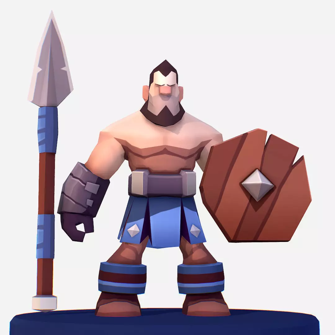 Man Spearman Wood Shield Handpaint Cartoon Medieval Low-poly 3D model