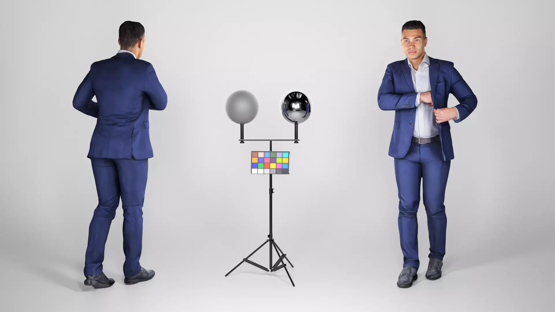 This is a true human size and detailed model of a young handsome man of Caucasian appearance dressed in office style. The model is captured in casual pose to be perfectly matching to variety of architectural visualization, background character, product visualization, e.g. advert banners, professional products/devices presentations, etc.