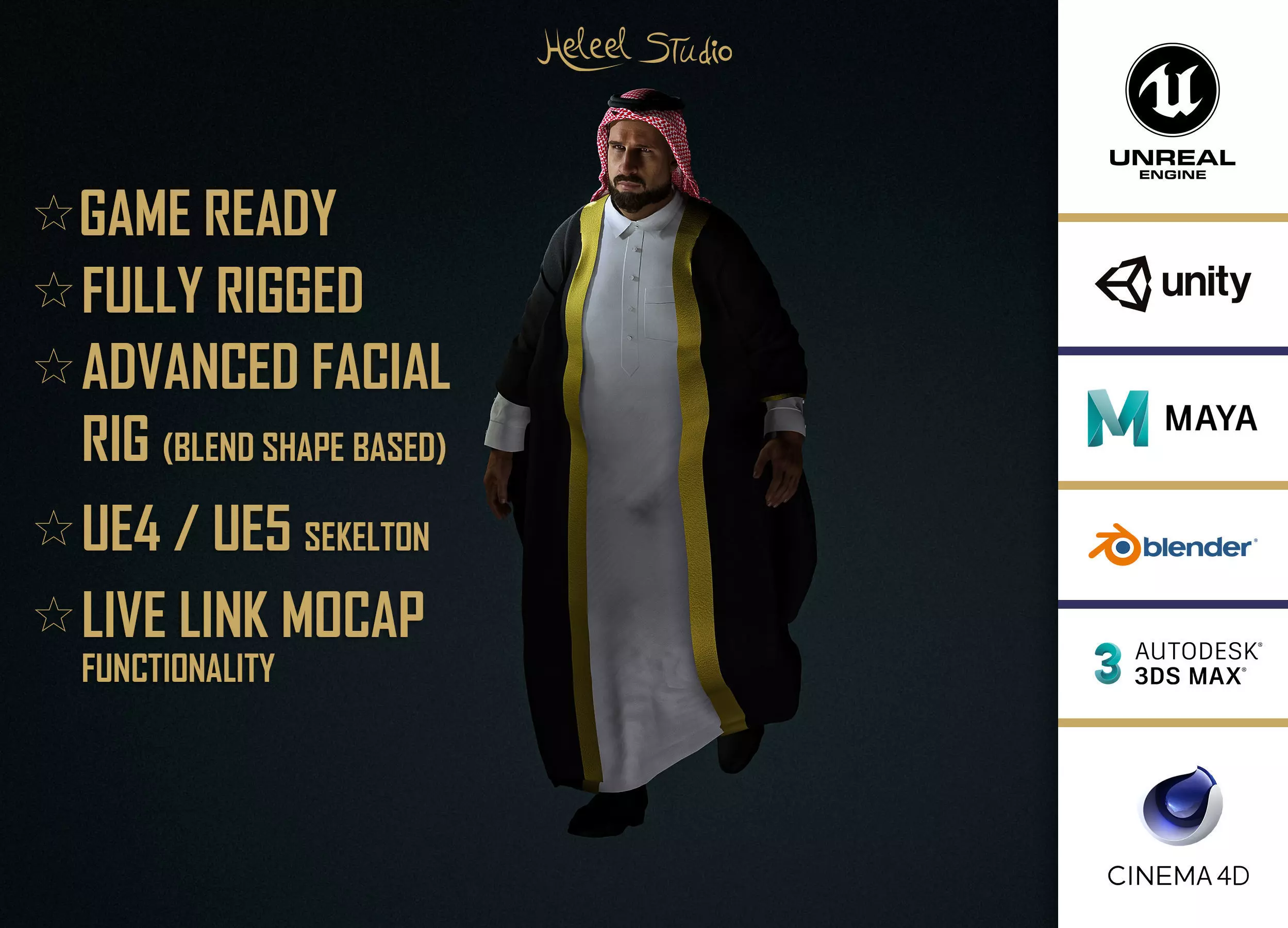 • 3Ds Max FBX (Contains body skeleton, expression blendshapes and embeds texutres)
