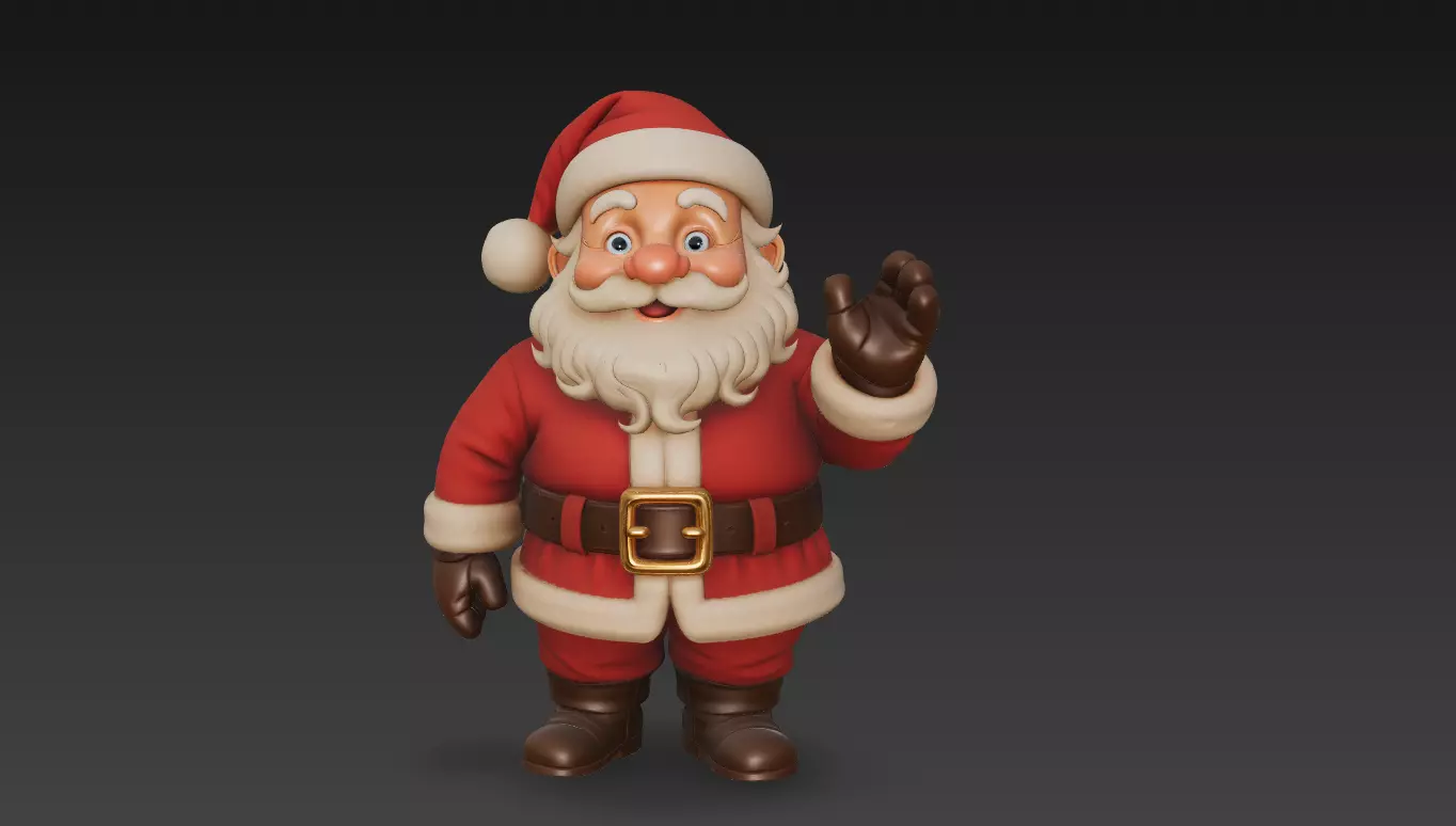 This is a high-quality stylized 3D Santa Claus character, designed for use in animations, games, rendering projects, advertising, holiday scenes, and VR/AR applications.The model features a friendly and expressive face, detailed clothing, clean topology, and premium stylized PBR materials.