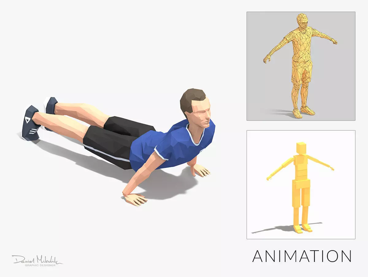 The model includes animations (movement or actions) that can be played in supported software or engines.