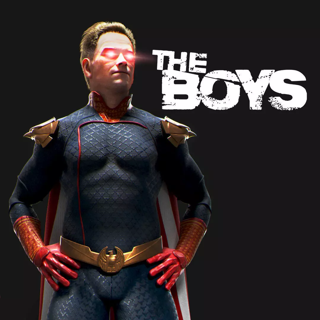 Homelander Neutral Pose a comics book theme superhero fictional person.The model has a fully textured, detailed design that allows for close-up render.