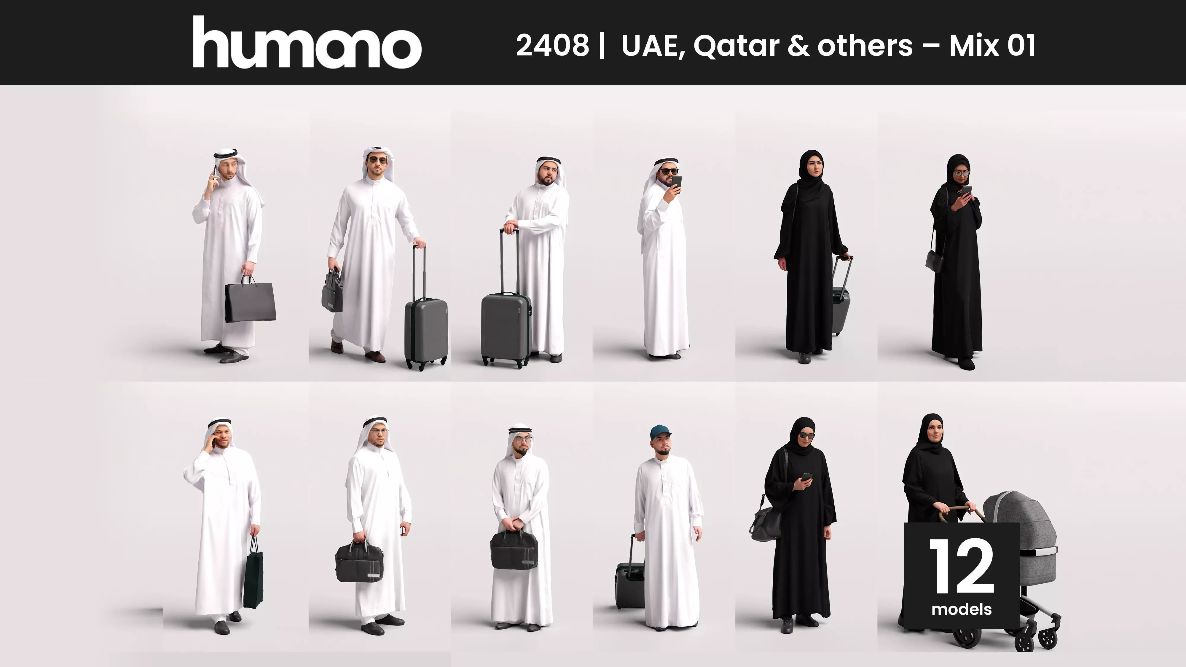 Humano 12-Collection 2408 - UAE QATAR ARAB MIX-12 x 3D models 3D model