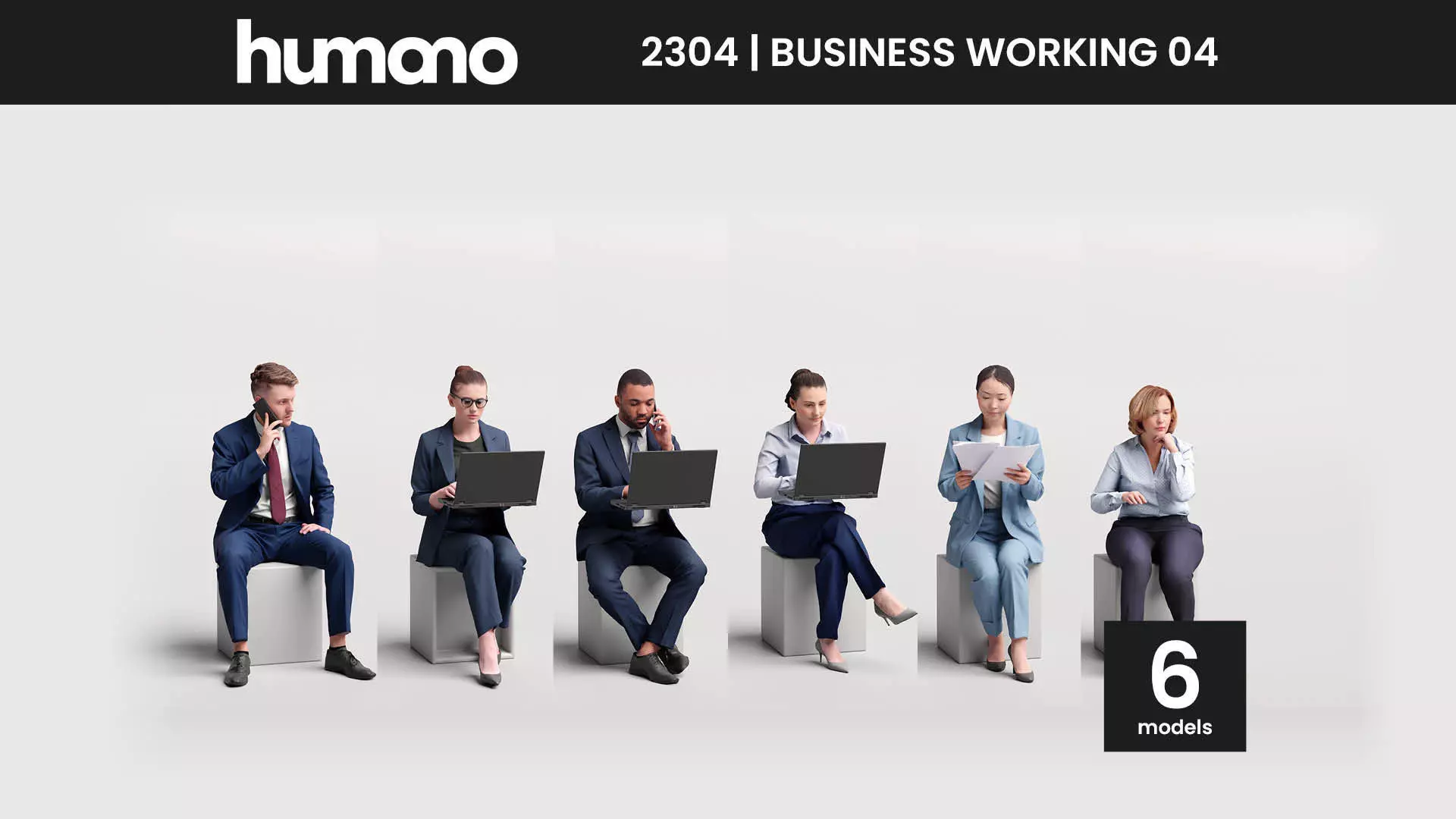 This is Humano Collections 2304 | Business 04 - Working at the office. Check out our other thematic collections of 3d people.