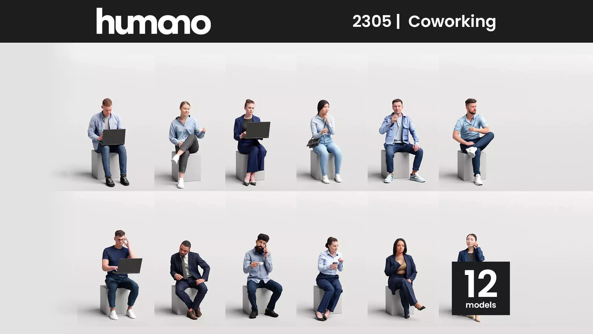 Humano 12- Collection 2305 - PEOPLE FOR OFFICE - 12 x 3D models 3D model