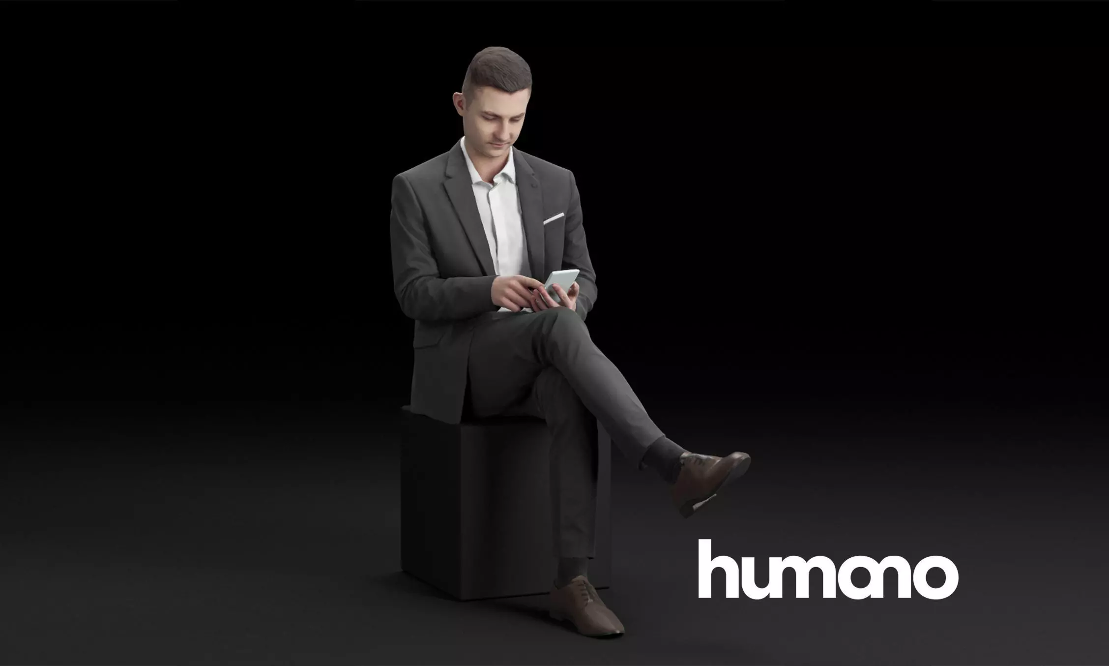 Humano Elegant man in suit sitting and taping on the phone 0317 3D model