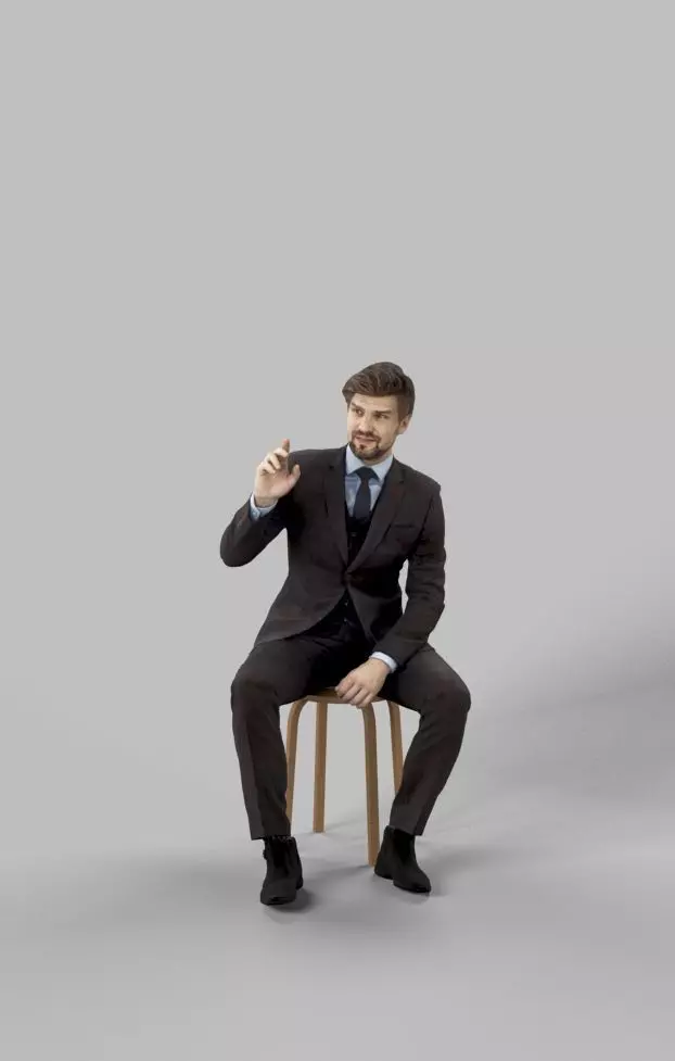 Ingrain A Business Man Sitting in a Cafe While Ordering Low-poly 3D model
