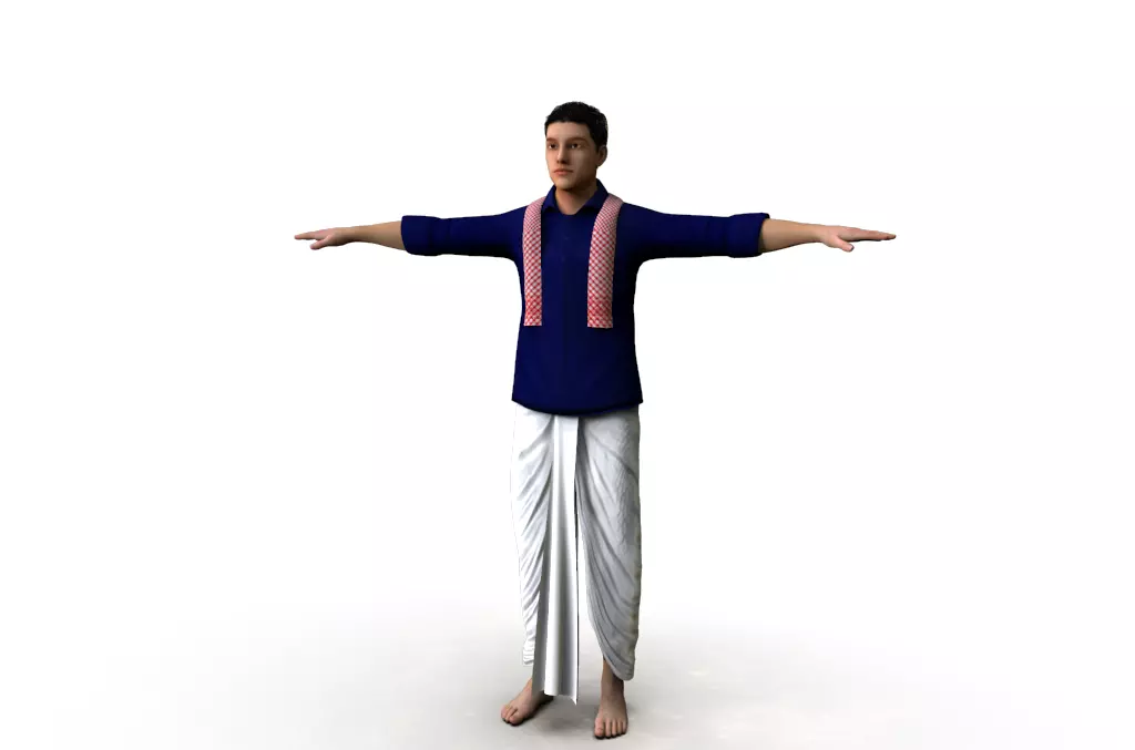 Indian man which you can find Multiple levels of LOD are needed whose poly count would be a. Level 0: around 30,000 poly (60k tris) b. Level 1: around 15,000 poly(30k tris) c. Level 2: around 7,000 poly(14k tris) a. Level 3: around 3,000 poly(6k tris) The texture is done in PBR workflow which is the albedo, specular, occlusion, normal, emission should be in 2k. which is suitable for all game engine