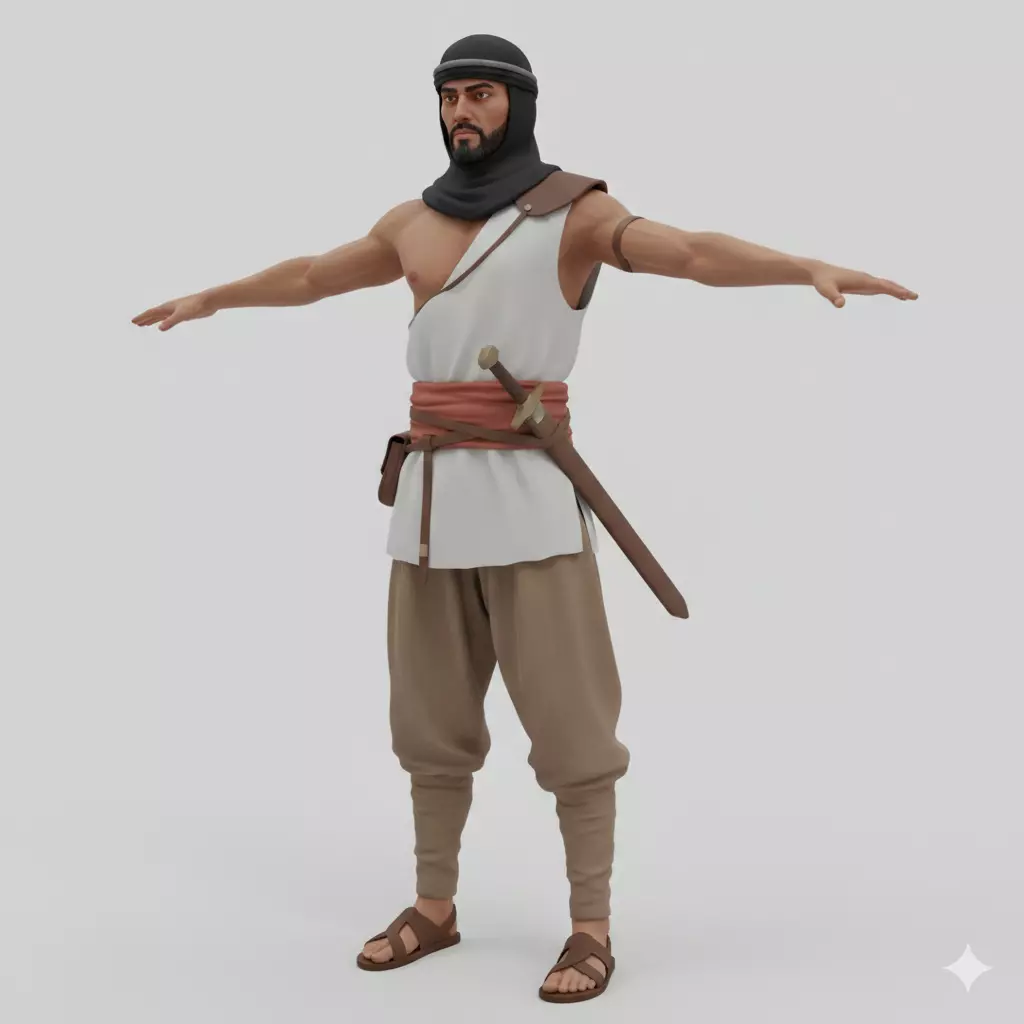 Looking for a character that embodies raw physical strength with a clean stylized look?The Legendary Muscular Warrior is a powerful 3D character designed with clean topology that clearly highlights muscular anatomy while maintaining a bold artistic style. Dressed in lightweight desert-inspired clothing, a black turban, and a leather belt carrying a traditional sword, this warrior is perfectly suited for action-driven games and cinematic adventure projects focused on melee combat.