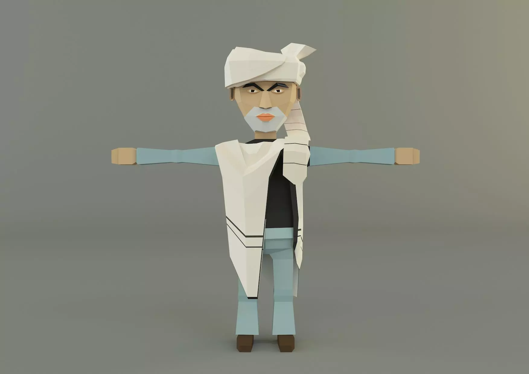 low polygon man 01. Created using blender. There is no skeletal system. There is no animation. There is a blender file. fbx file exists. Rendered using 3ds max. There is no render scene.