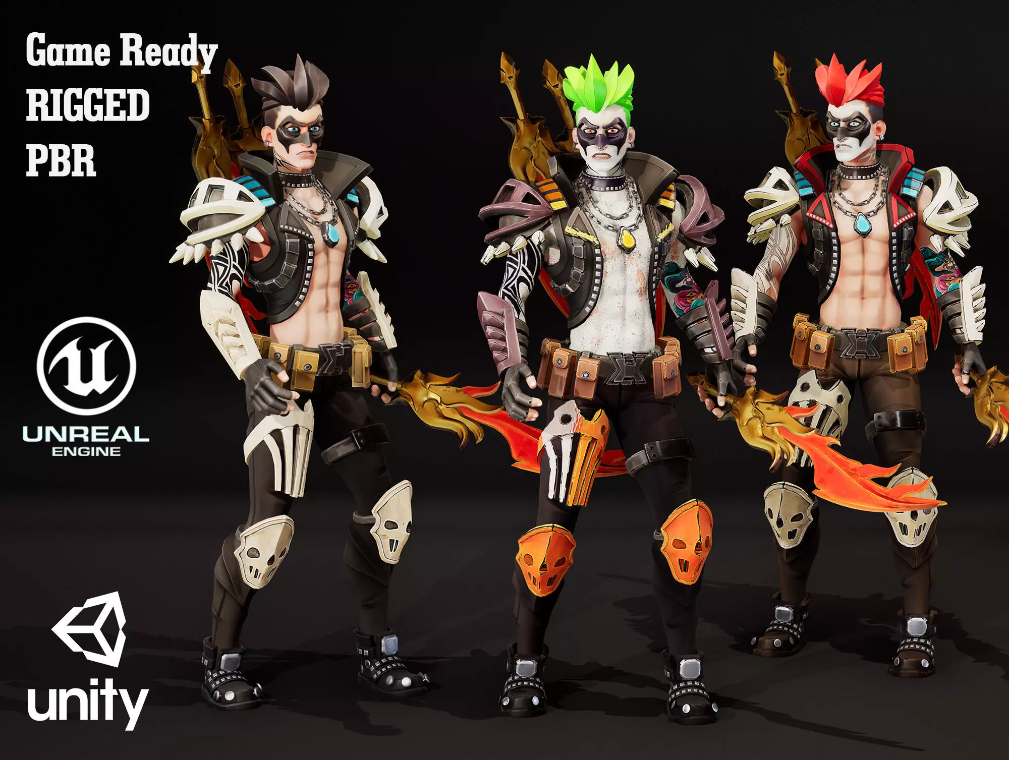 PBR Textures Metal/Roughness 4K Textures - normal, metallic, roughness, albedo, occlusion.2 Texture sets - M_malePunisher_Body, M_malePunisher_Head - Character1 Texture sets - M_malePunisher_Weapon - Weapon