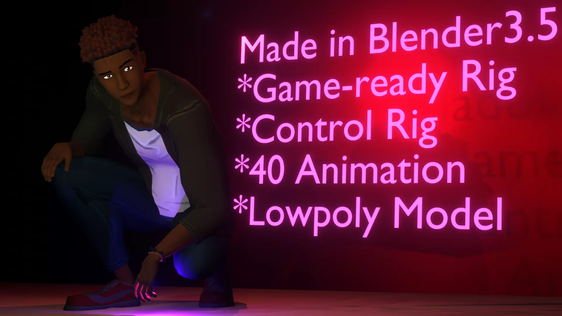 Hi,Its completely free for 3 months. I made it in blender 3.3 Insided this file there is a control rig and a game rig which I have created for you. It have a 6000 vertex, pretty low poly character I have made it. It have a 1k resolution image for all. It also have some basic animation like WALK, RUN SPRINT, JUMP, LAND, FALL, PRONE, CROUCH, IDLE This character and the other characters that I am going to share the link are all using the same rig what it means is that, if you animate one character you can assign the animation to other characters as well good luck