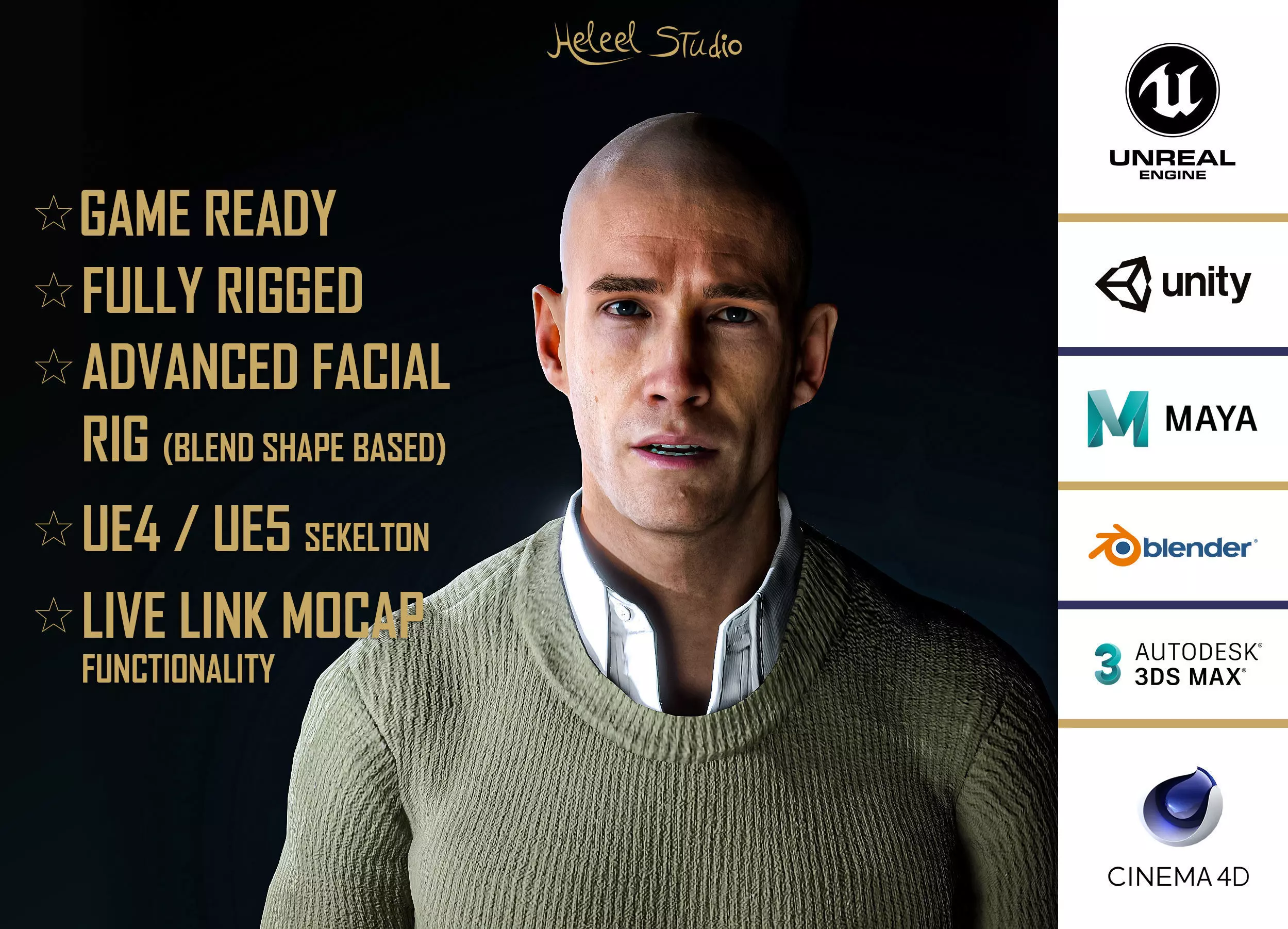 • 3Ds Max FBX (Contains body skeleton, expression blendshapes and embeds texutres)
