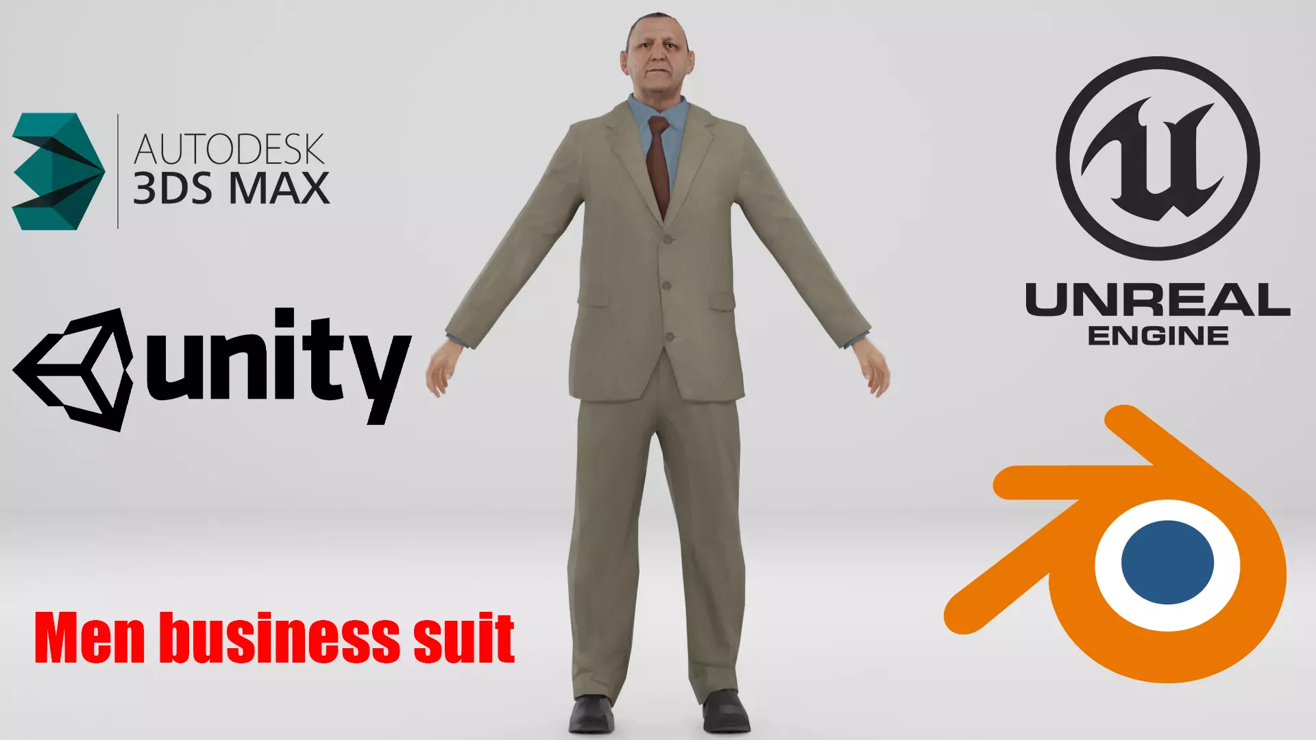 Men business suit Low-poly 3D model fbx, blend, obj, mtl file and PBR Texture